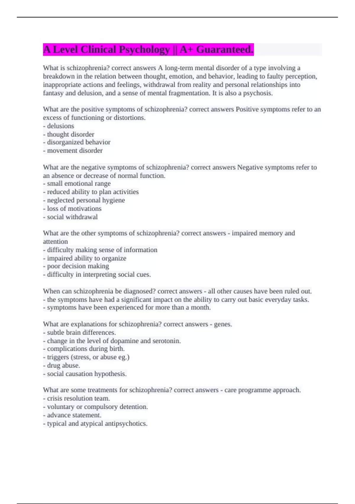 What is schizophrenia? correct answers A long-term mental disorder of a type involving a