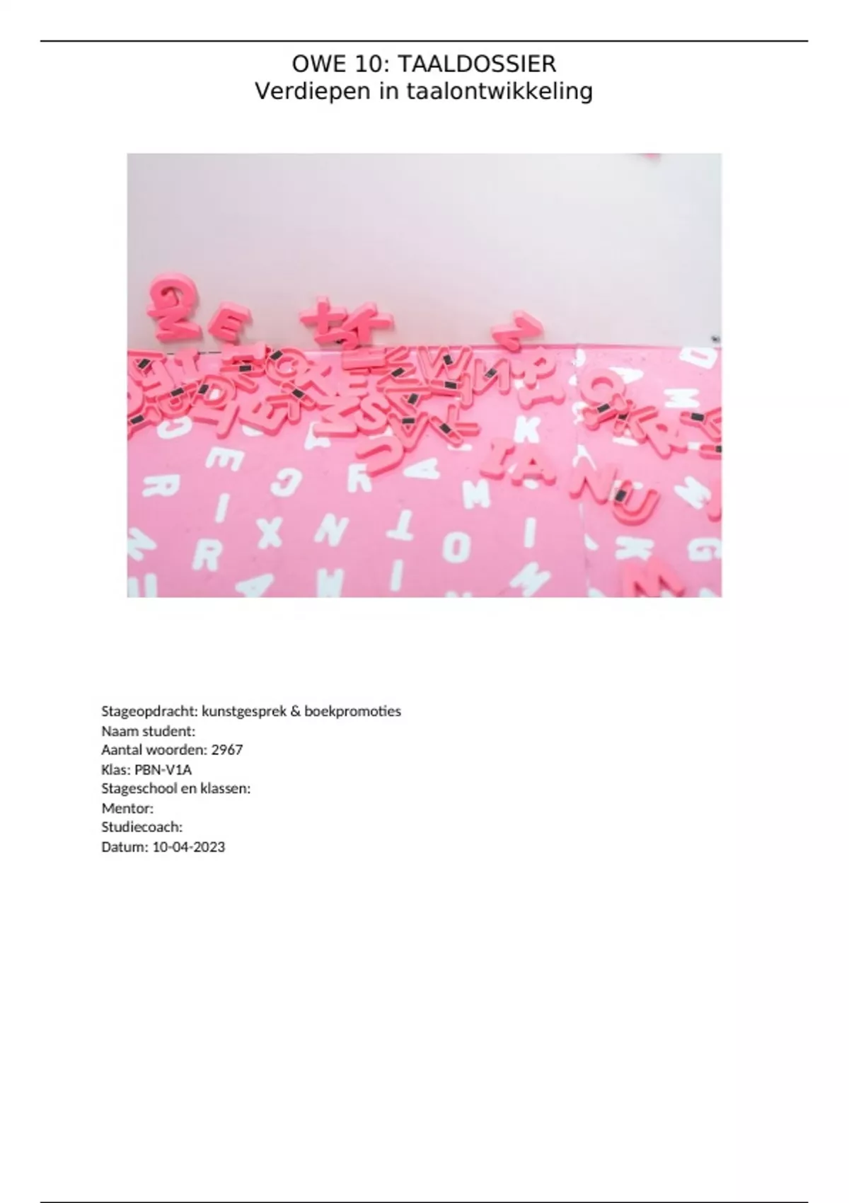 2.2 Taal- en kunstdoel(en) voor de kinderen....................................................................................10
