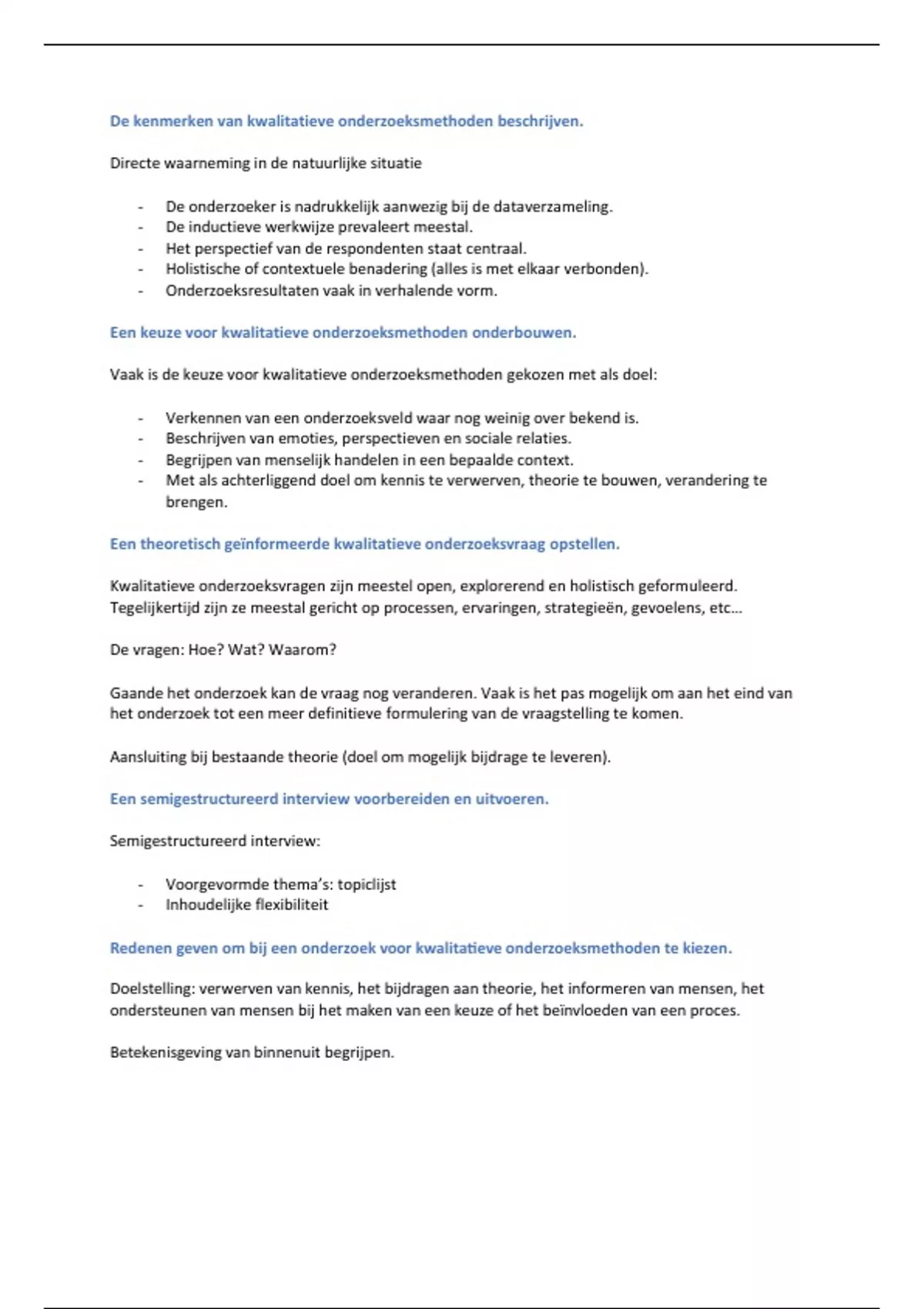 De kenmerken van kwalitatieve onderzoeksmethoden beschrijven.