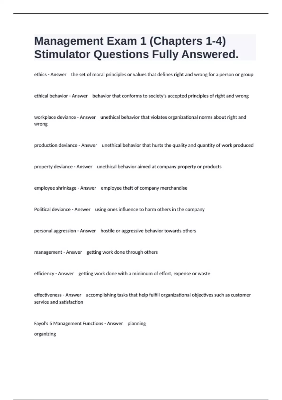 Fayol's 5 Management Functions - Answer planning