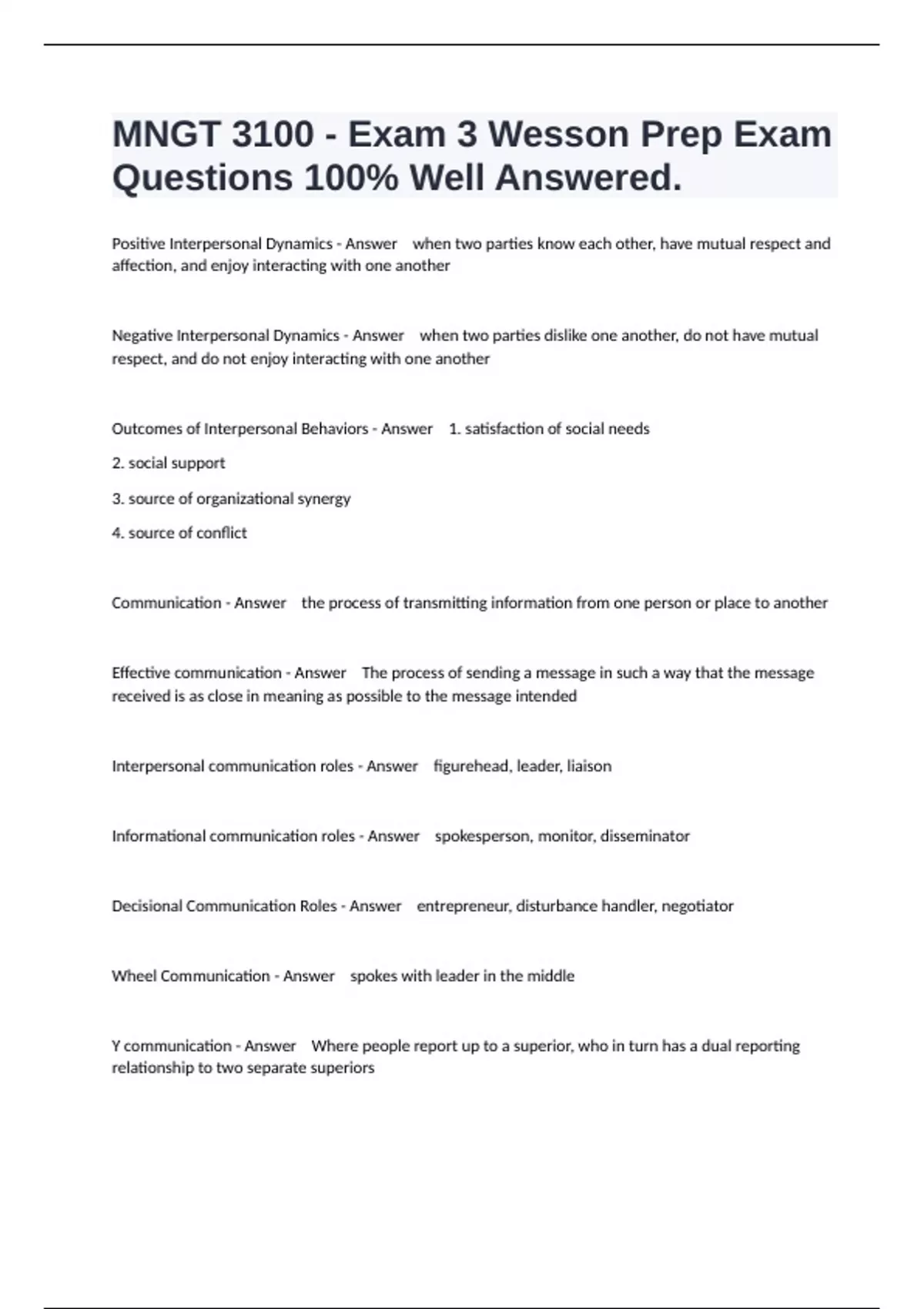 Outcomes of Interpersonal Behaviors - Answer 1. satisfaction of social needs