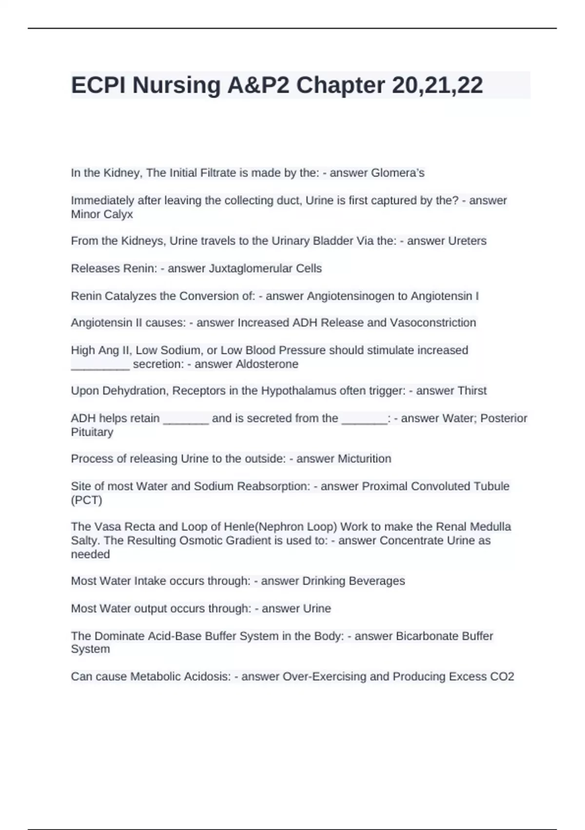 Angiotensin II causes: - answer Increased ADH Release and Vasoconstriction