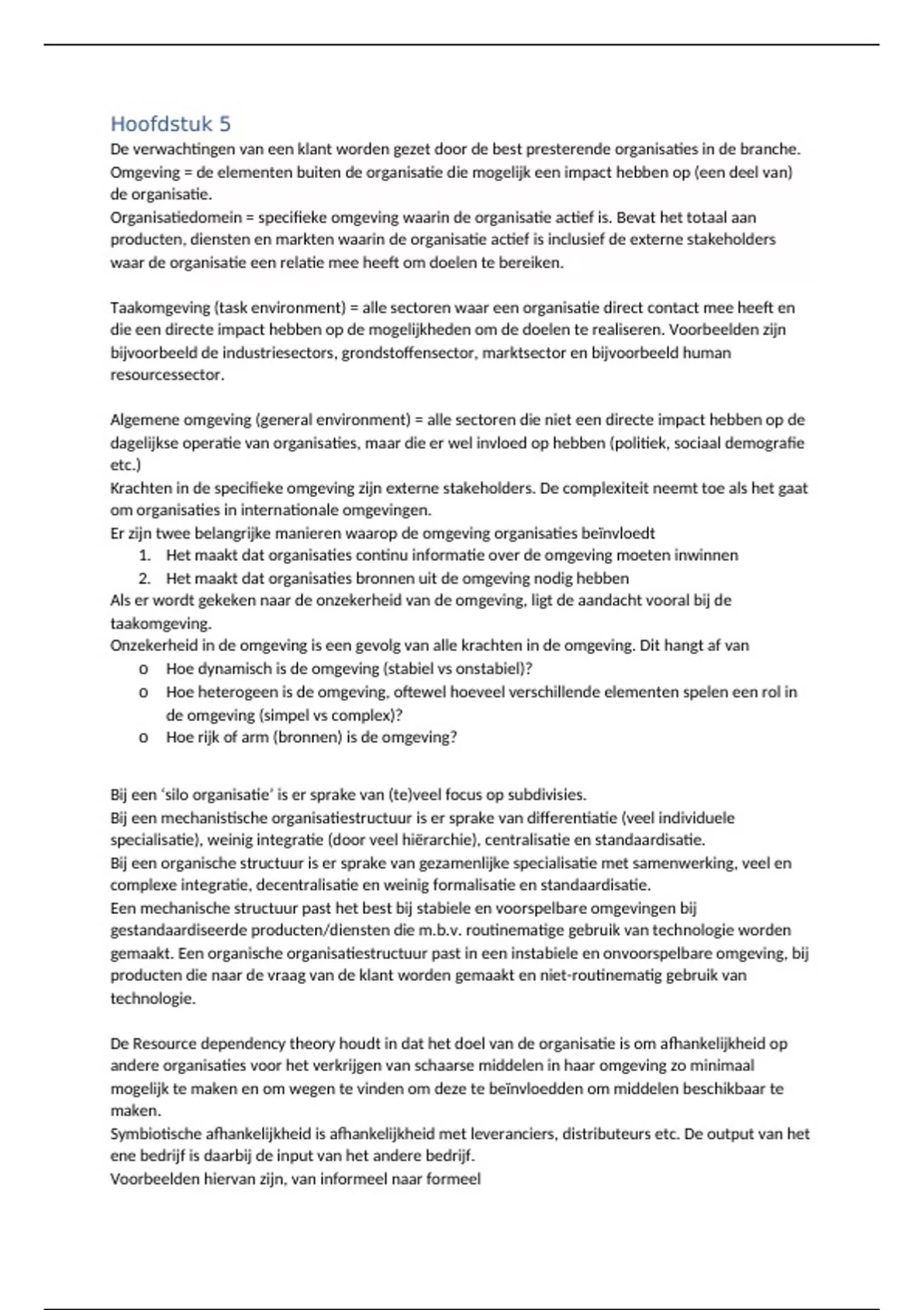 Omgeving = de elementen buiten de organisatie die mogelijk een impact hebben op (een deel van)