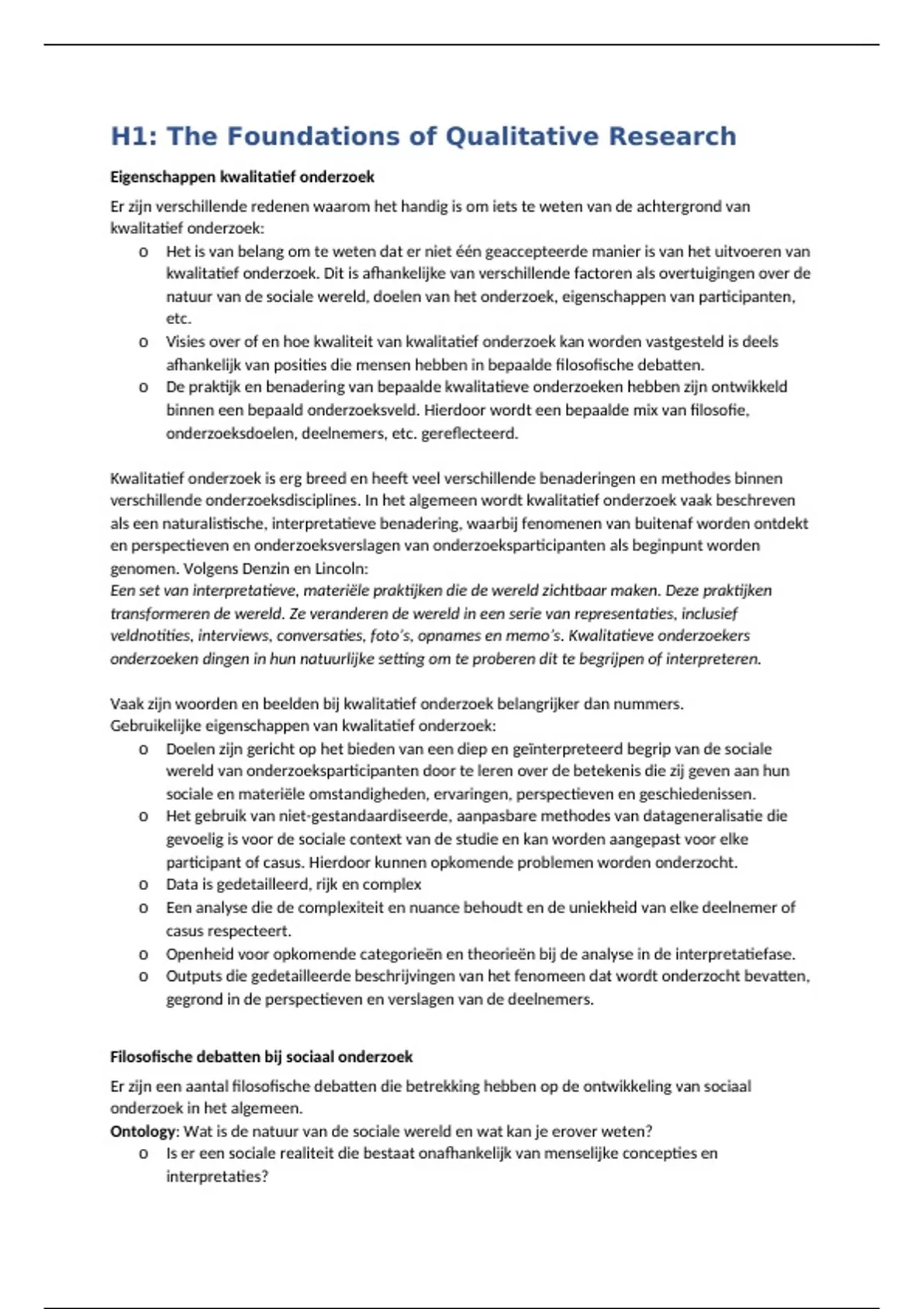 Uitgebreide samenvatting van de eerste drie hoofdstukken van Kwalitatieve onderzoeksmethoden. Belangrijke begrippen worden uitgelegd en er wordt een overzicht gegeven van de verschillende stromingen.