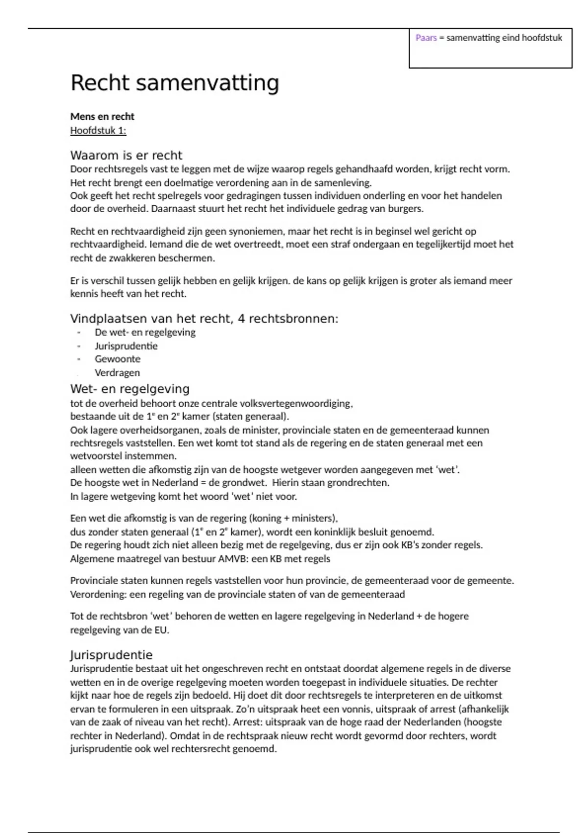 recht samenvatting