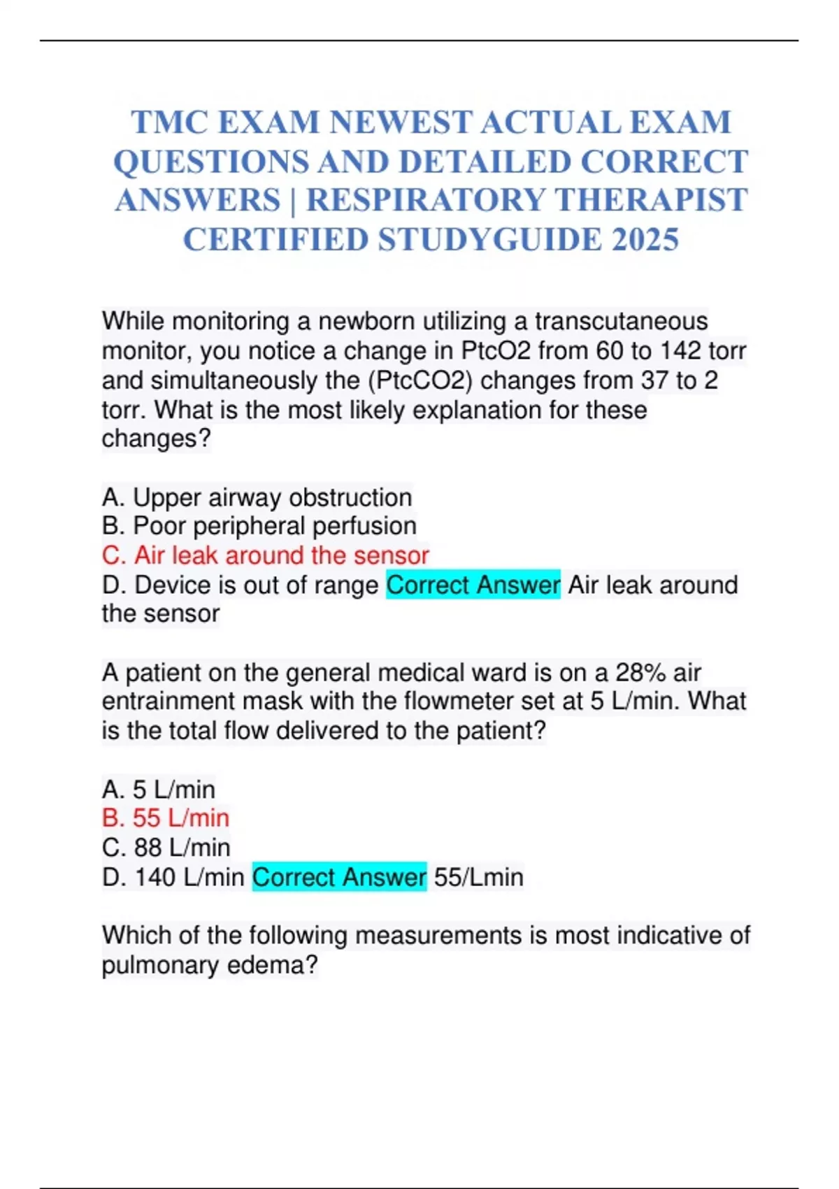 TMC EXAM NEWEST ACTUAL EXAM QUESTIONS AND DETAILED CORRECT ANSWERS | RESPIRATORY THERAPIST CERTIFIED STUDYGUIDE 2025