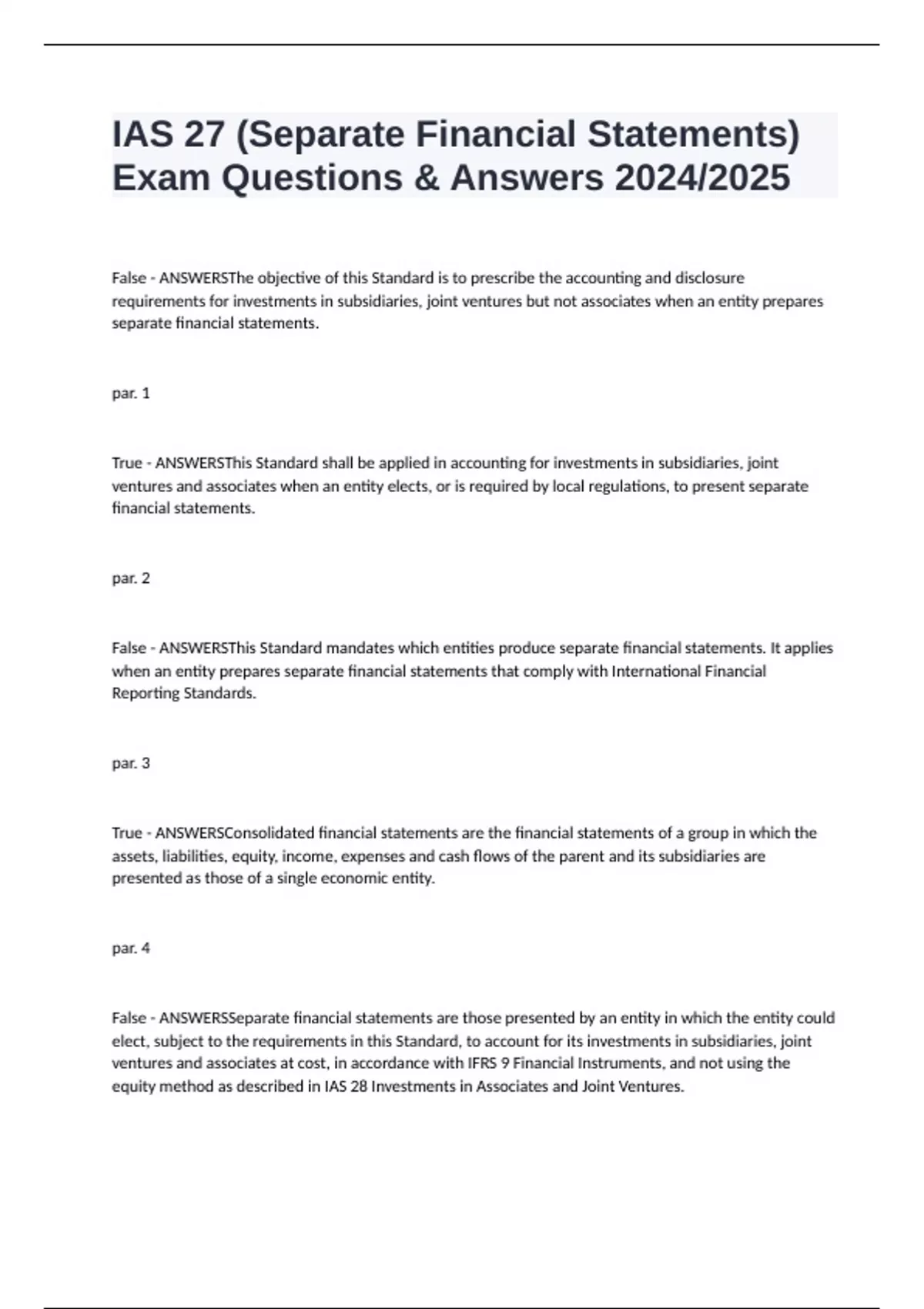 False - ANSWERSThe financial statements of an entity that does not have a subsidiary, associate or joint