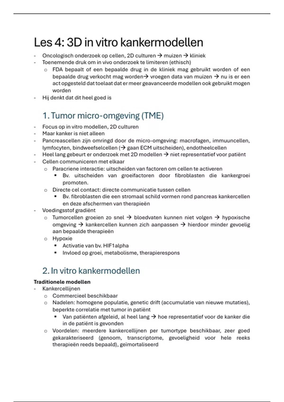 gradiënt, interactie tussen cellen, co-culturen, recreëren van TME, mogelijkheid om