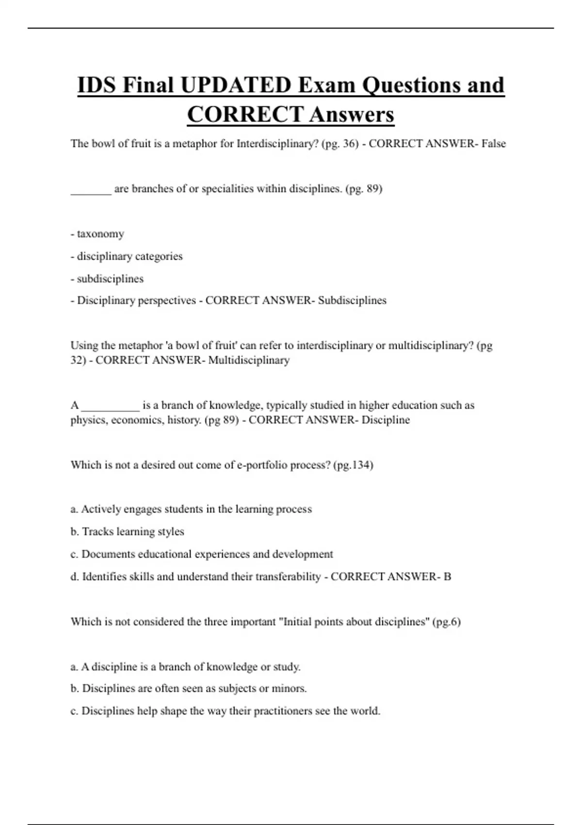 ,d. Disciplines help shape a student's future is deciding their major. - CORRECT ANSWER-