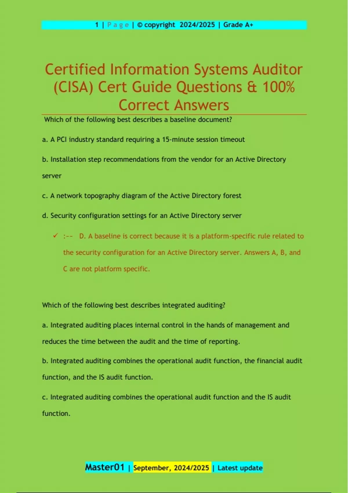 (CISA) Cert Guide Questions & 100%