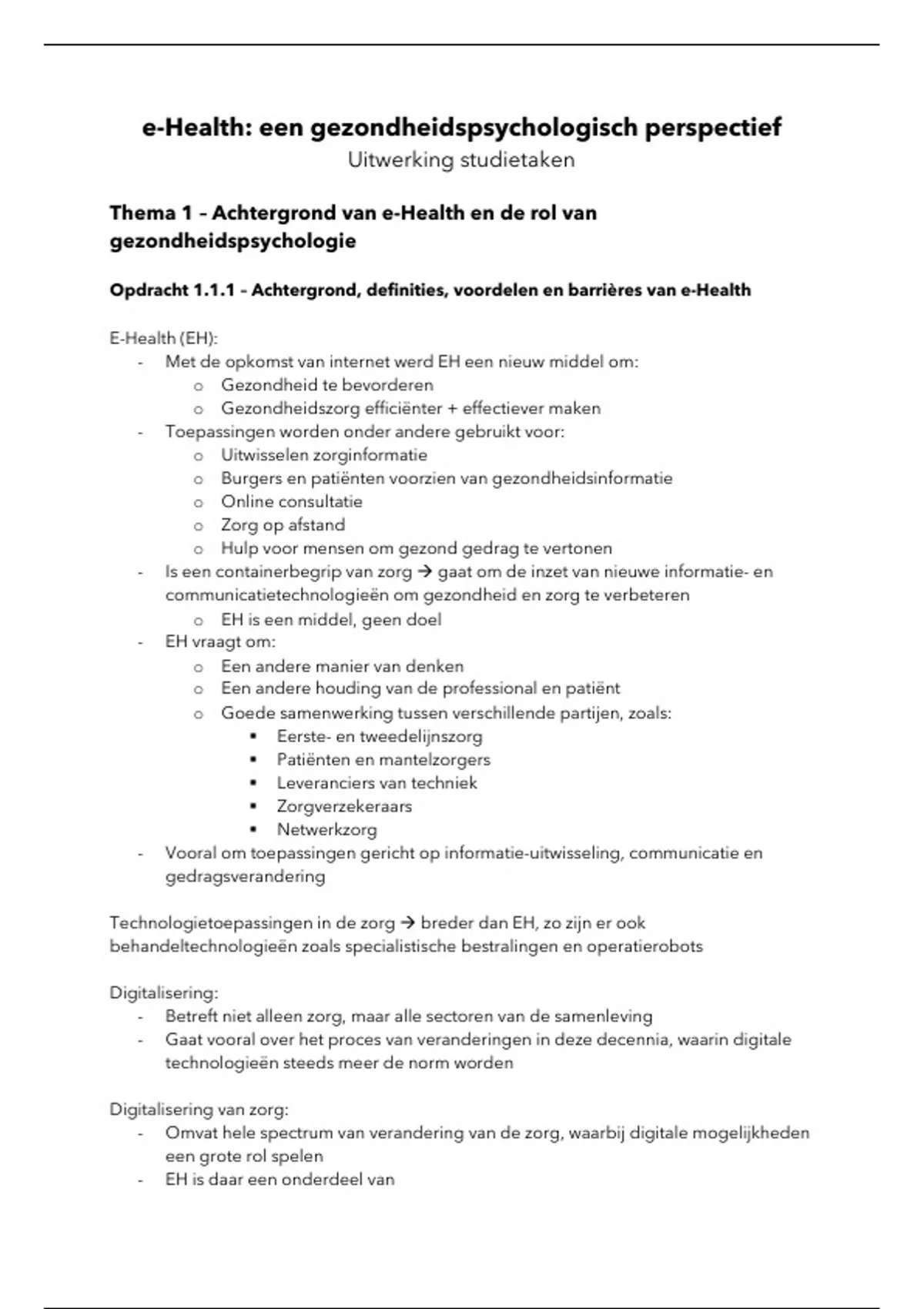 Samenvatting Open Universiteit: E-Health, uitwerkingen studietaken