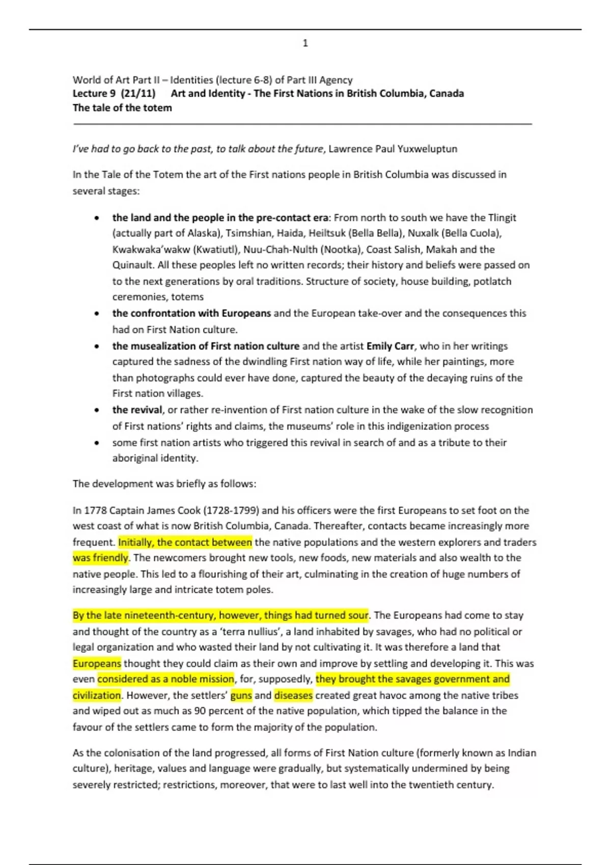 Lecture 9 (21/11) Art and Identity - The First Nations in British Columbia, Canada