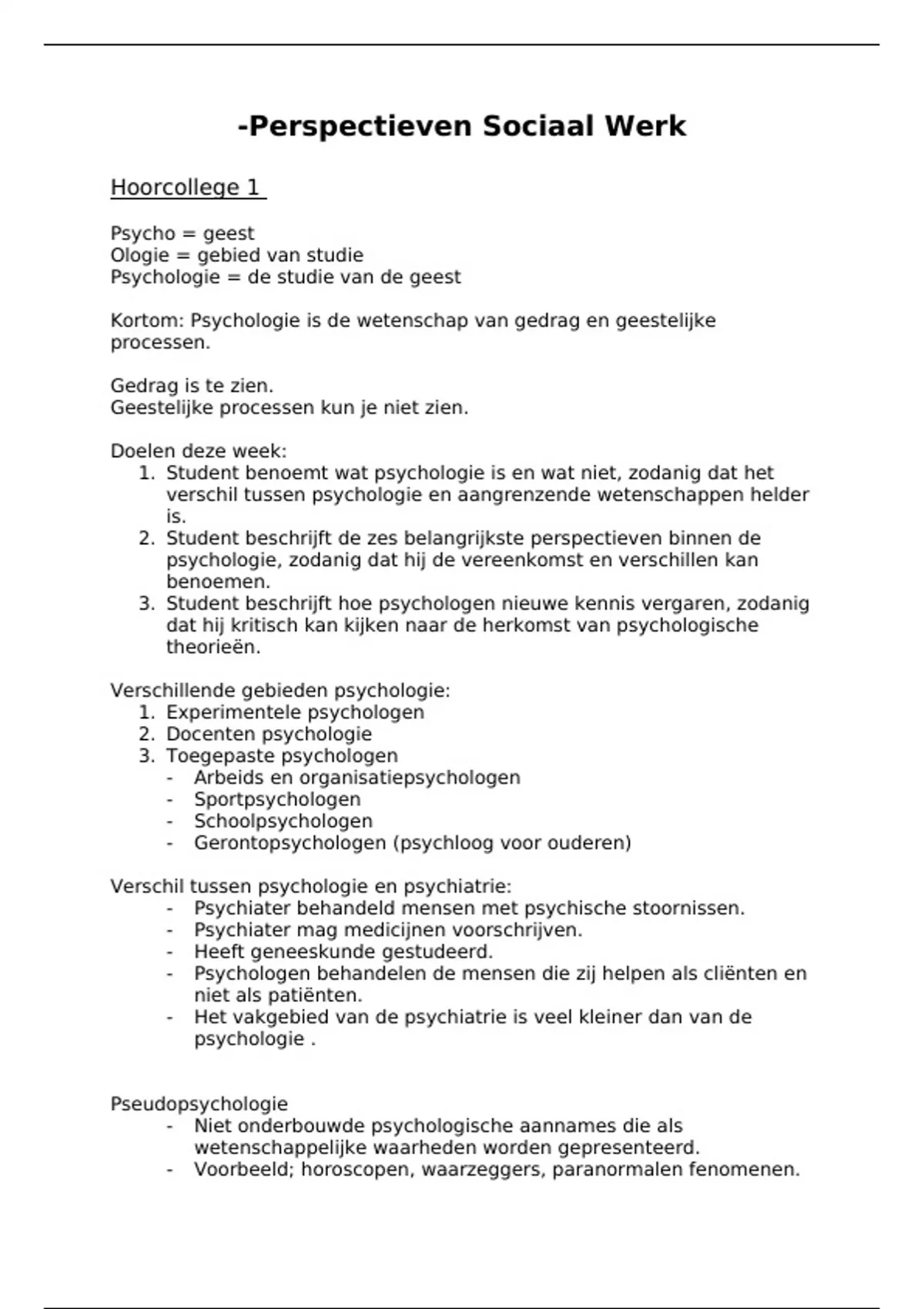 1. Student benoemt wat psychologie is en wat niet, zodanig dat het