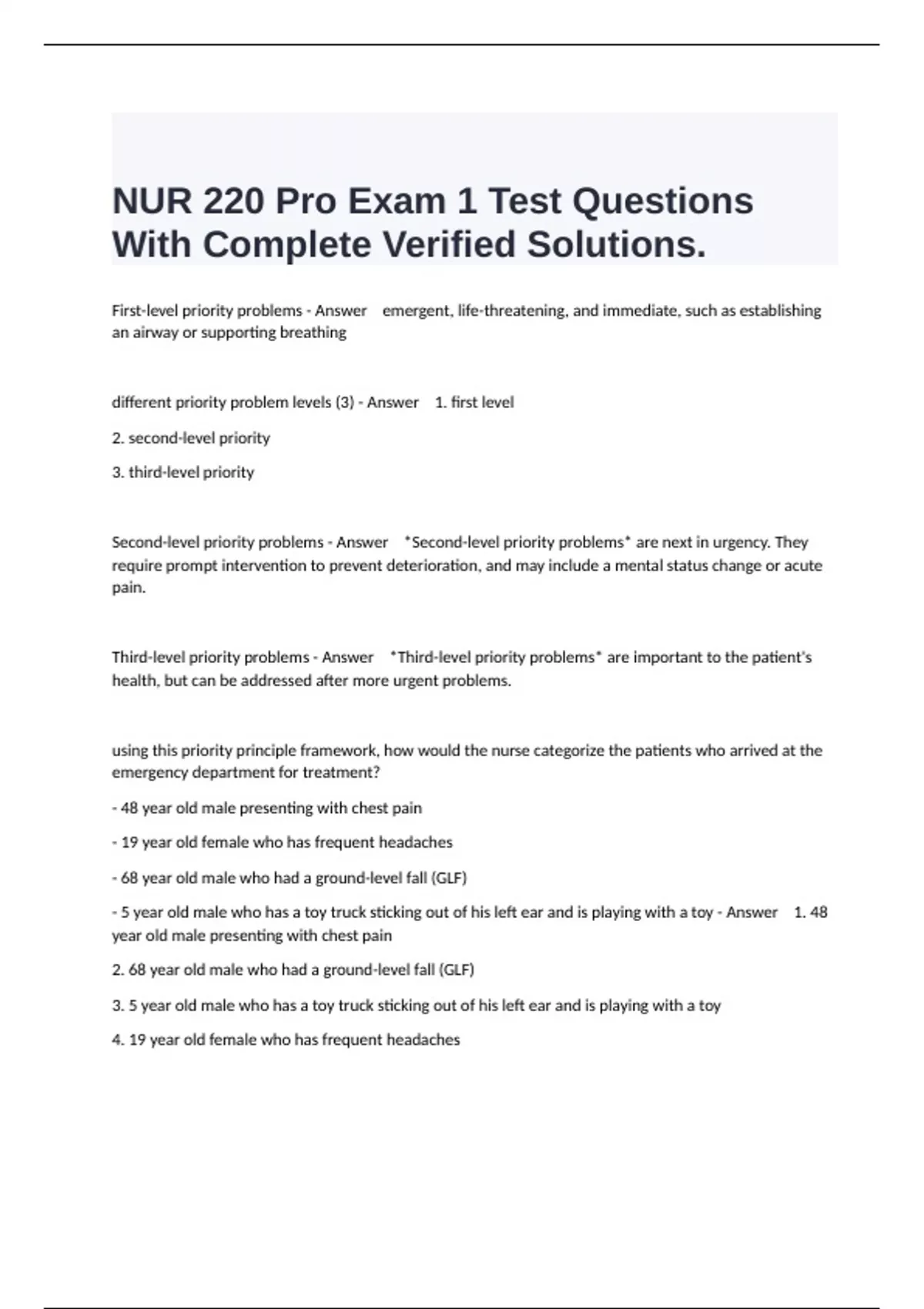 NUR 220 Pro Exam 1 Test Questions With Complete Verified Solutions.