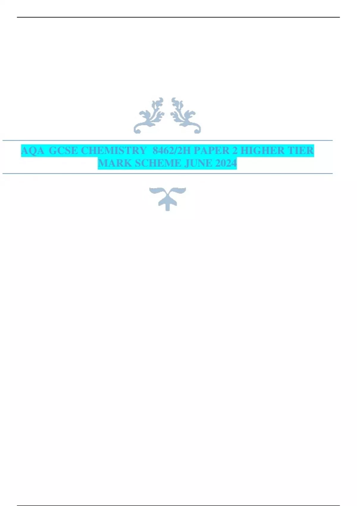 , MARK SCHEME – GCSE CHEMISTRY – 8462/2H – JUNE 2024