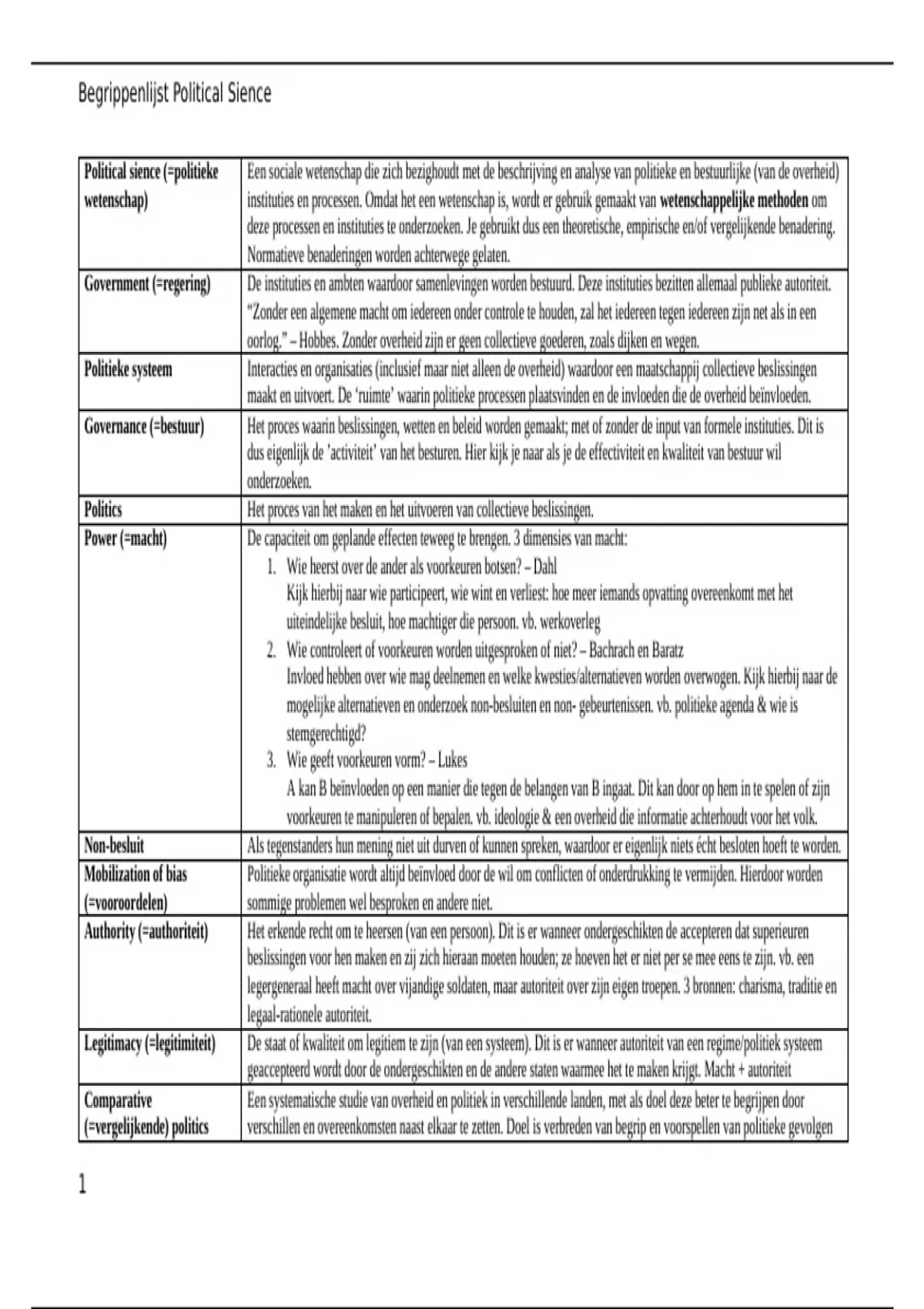 Samenvatting begrippenlijst - Political Science (FSWSBC2-012)