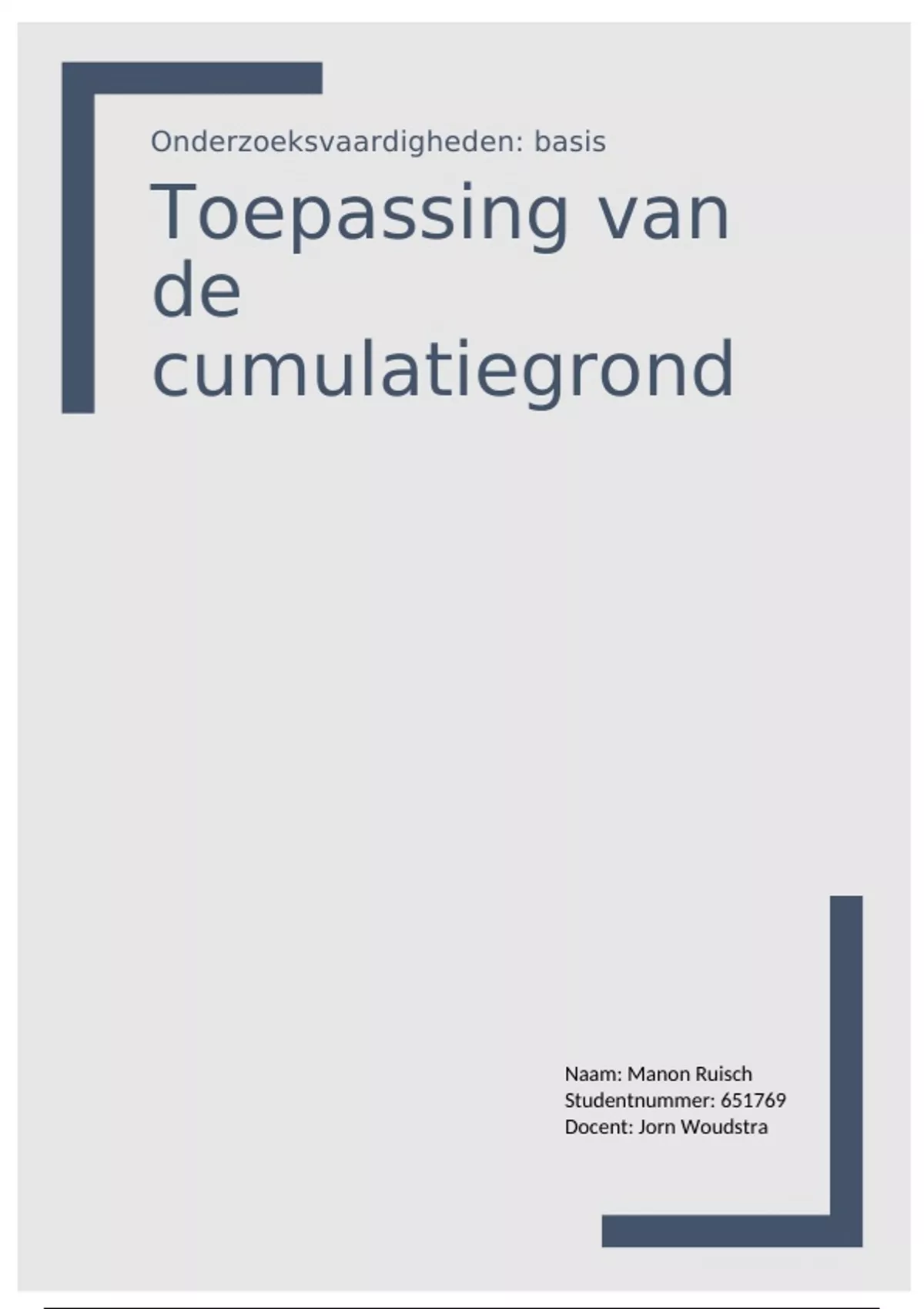 Onderzoeksvaardigheden basis (vroeger: plan van aanpak Tender) behaald met een 8. Onderwerp: toepassing van de cumuoatiegrond.