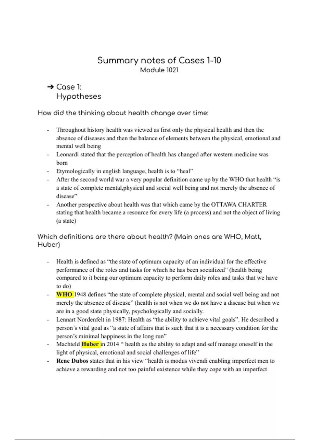 Which definitions are there about health? (Main ones are WHO, Matt,