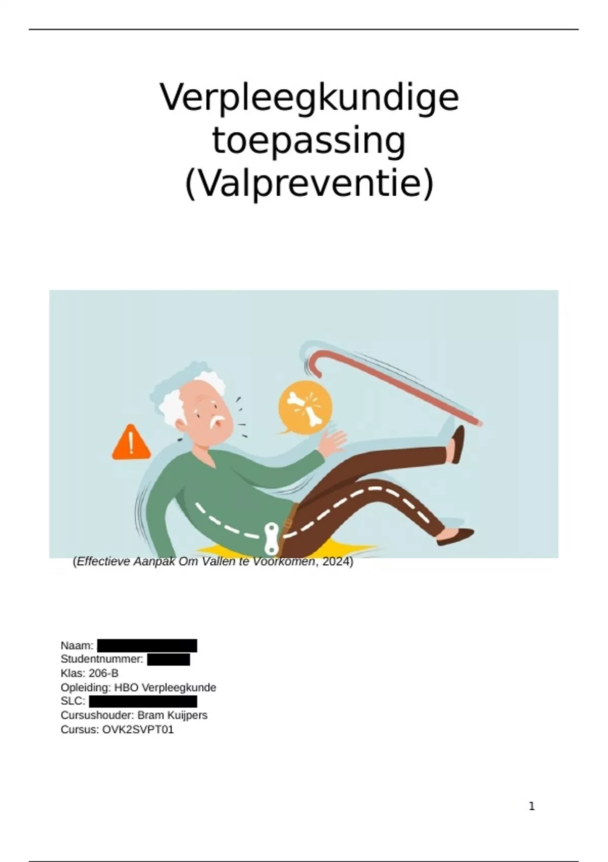 schrijf ik dit verslag met als titel "Hoe kan een verpleegkundige valpreventie inzetten bij