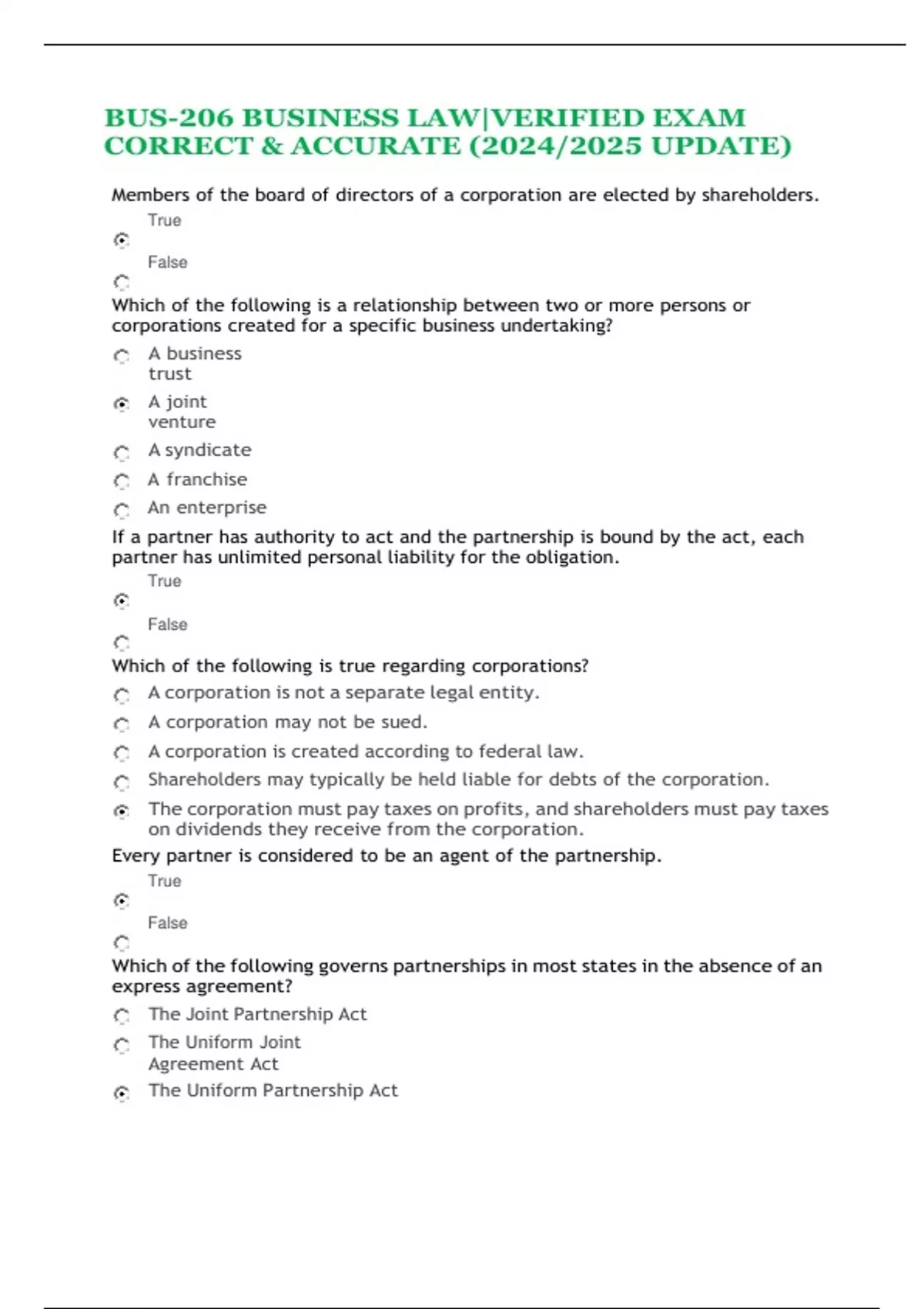 BUS-206 BUSINESS LAW|VERIFIED EXAM CORRECT & ACCURATE (2024/2025 UPDATE)