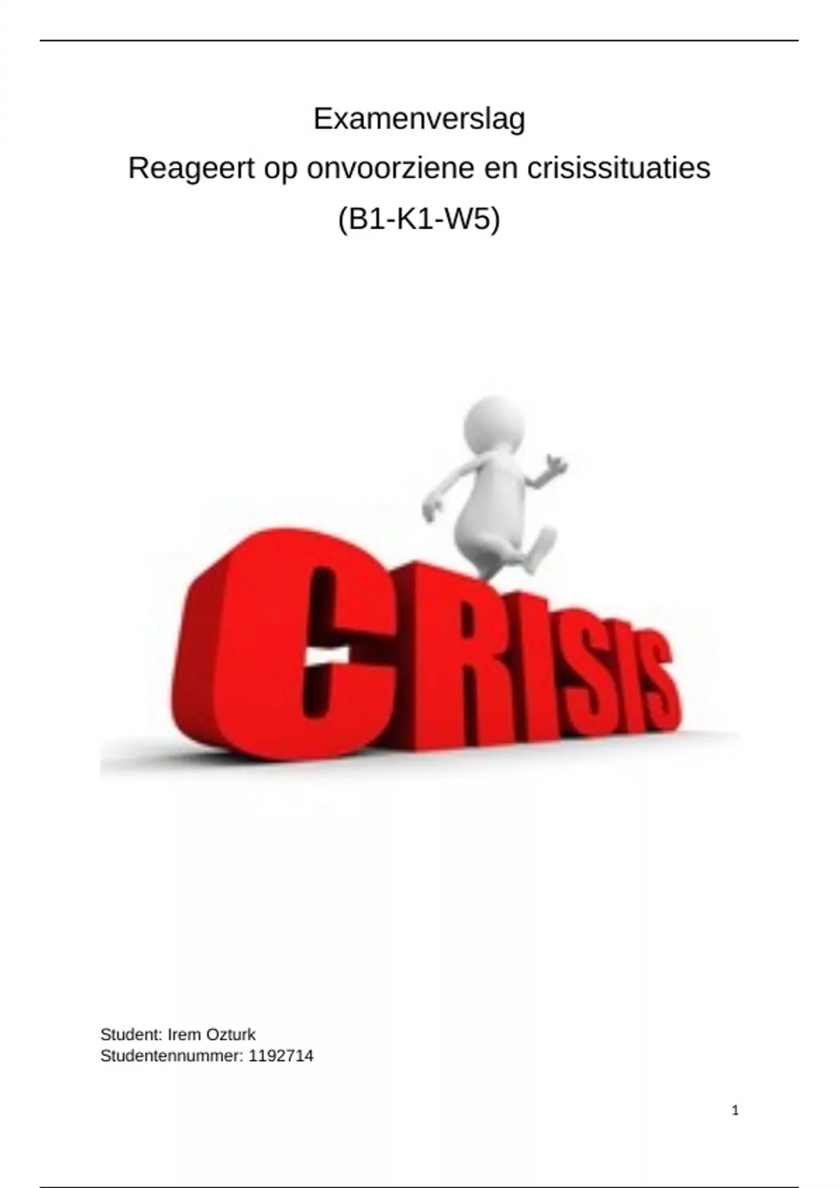 N.a.v. een crisissituatie op mijn praktijkplek en de examenopdracht schrijf ik deze verslag. De