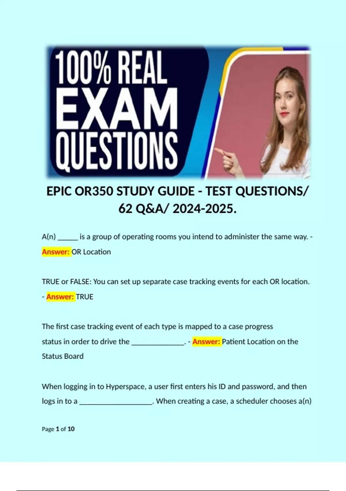 EPIC OR350 STUDY GUIDE - TEST QUESTIONS/ 62 Q&A/ .