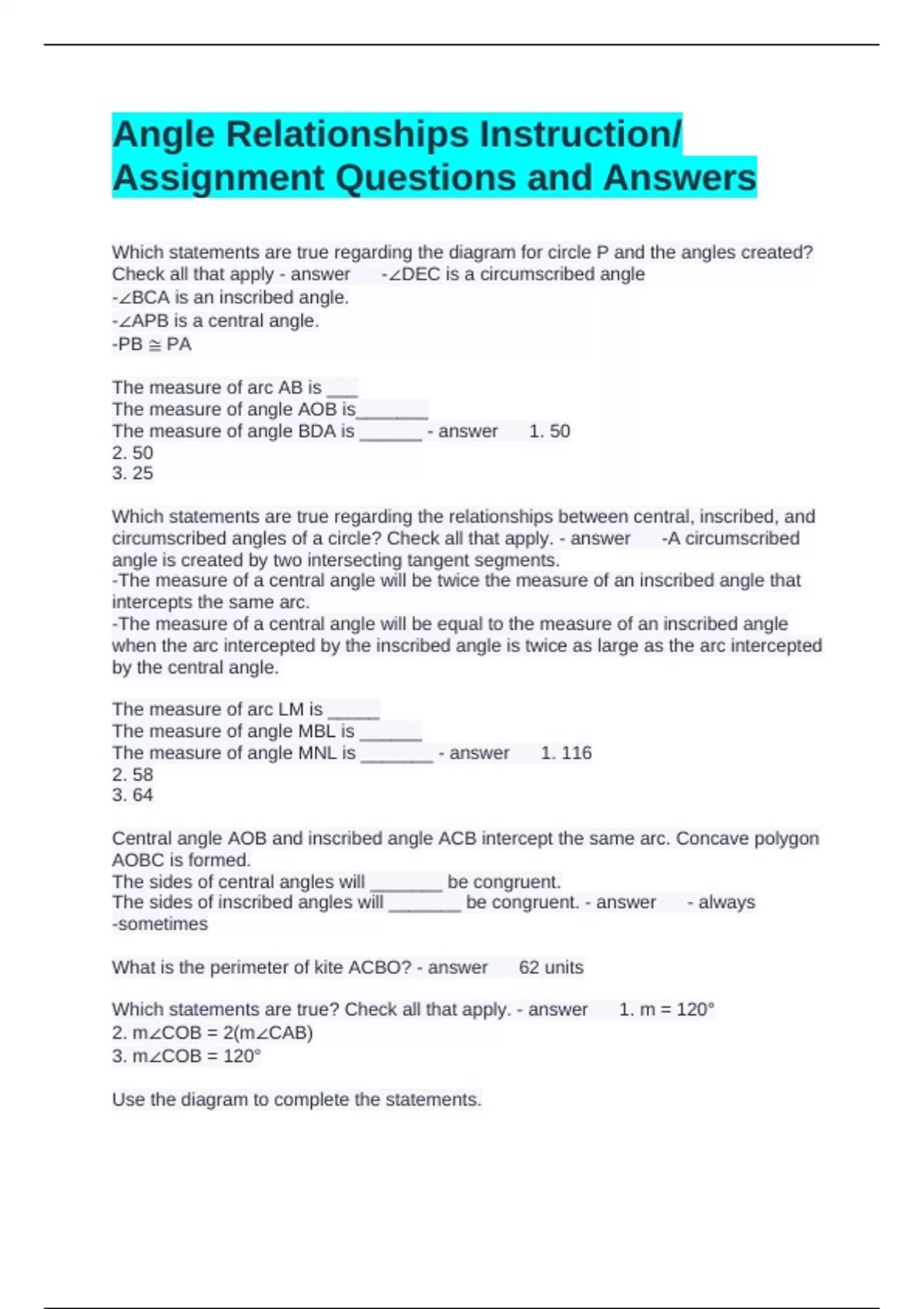 circumscribed angles of a circle? Check all that apply. - answer -A circumscribed