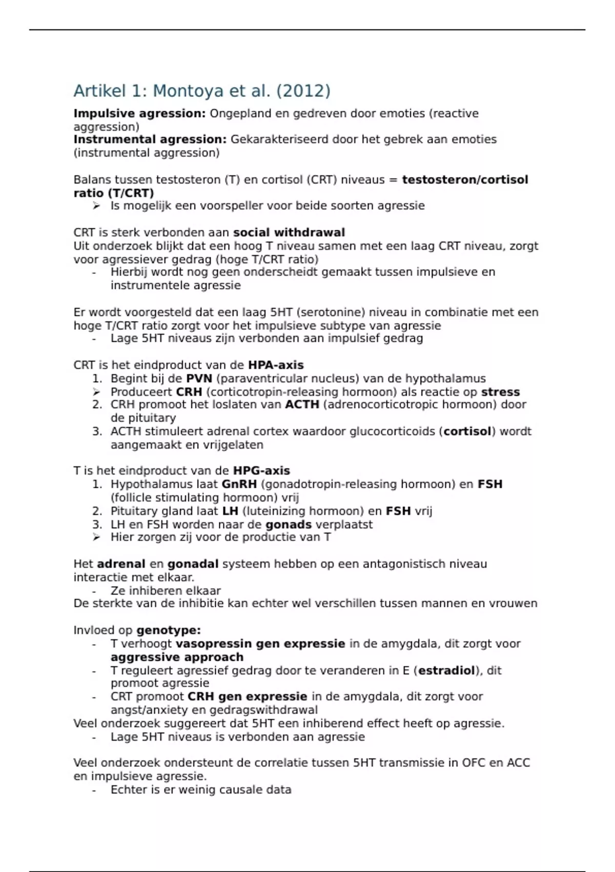 , Er is weinig onderzoek dat naar zowel T, als CRT en 5HT kijkt.