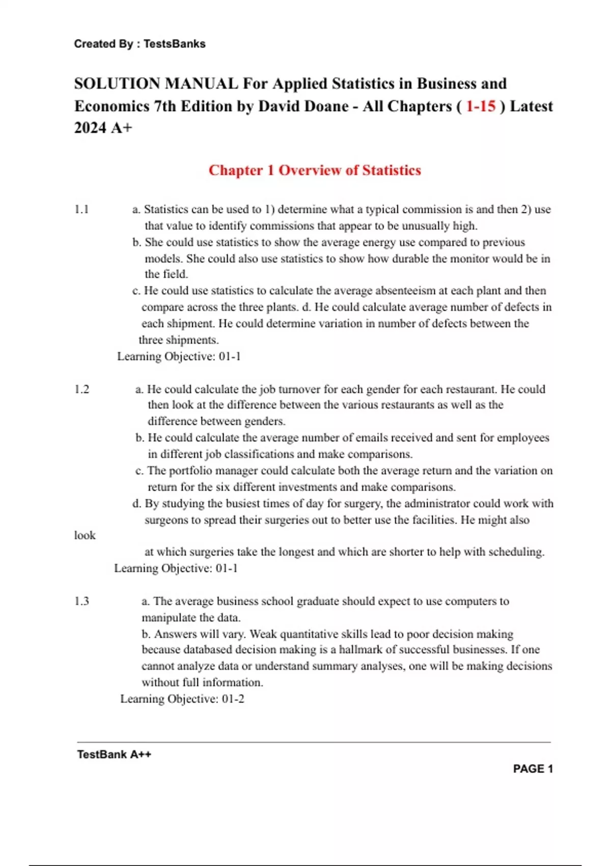 Economics 7th Edition by David Doane - All Chapters ( 1-15 ) Latest