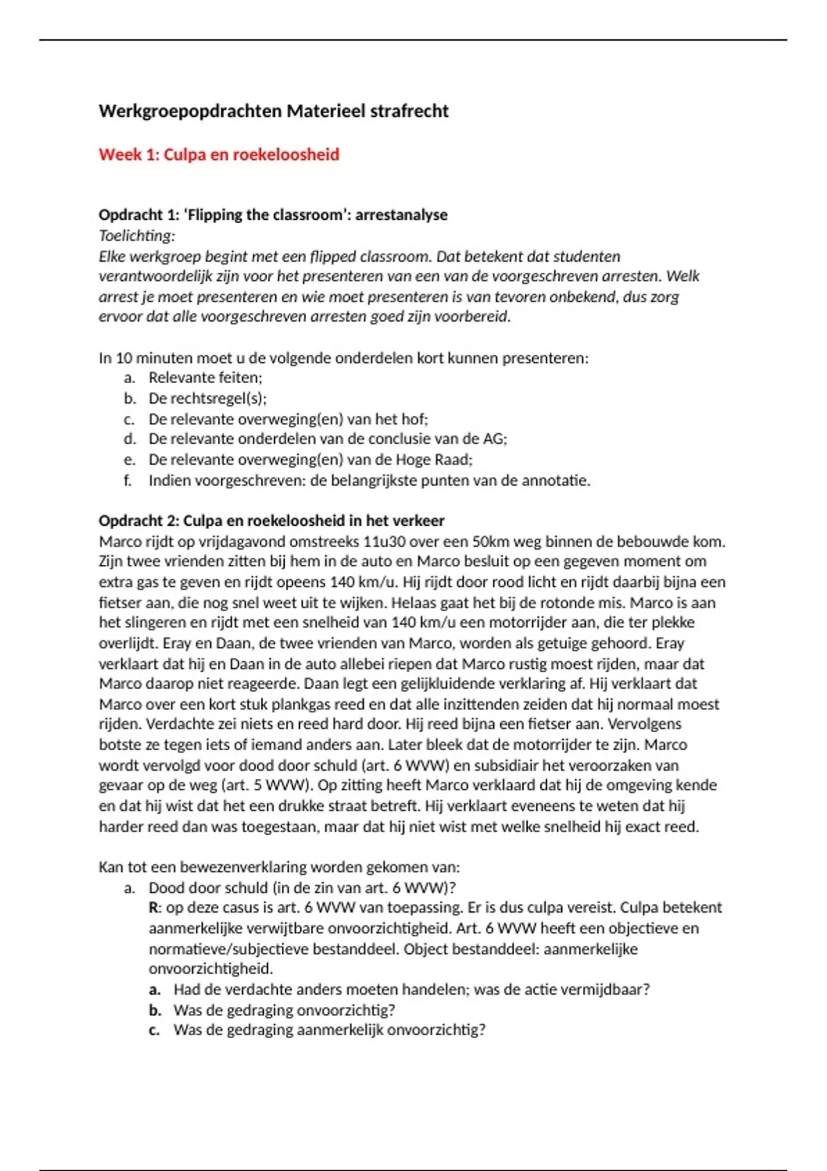 Uitwerkingen van de werkgroepopdrachten van het vak Materieel Strafrecht.