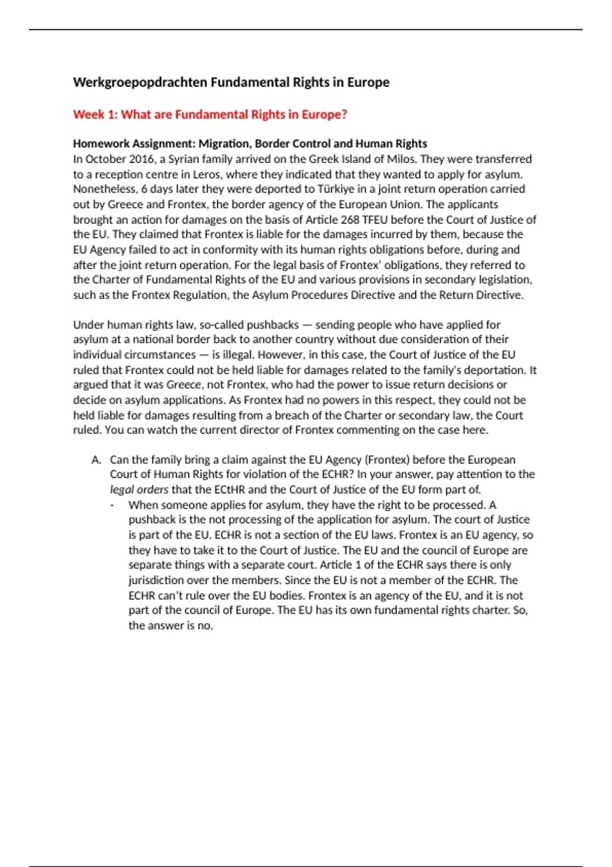 Uitwerkingen van de werkgroepopdrachten van het vak Fundamental Rights in Europe.