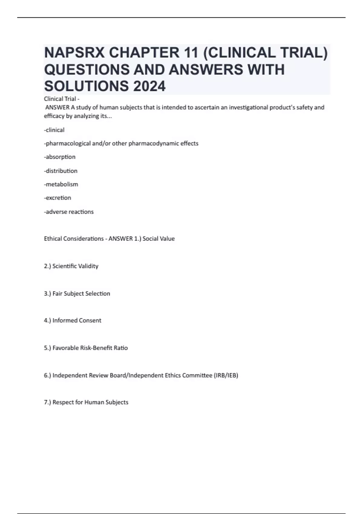 NAPSRX CHAPTER 11 (CLINICAL TRIAL) QUESTIONS AND ANSWERS WITH SOLUTIONS 2024