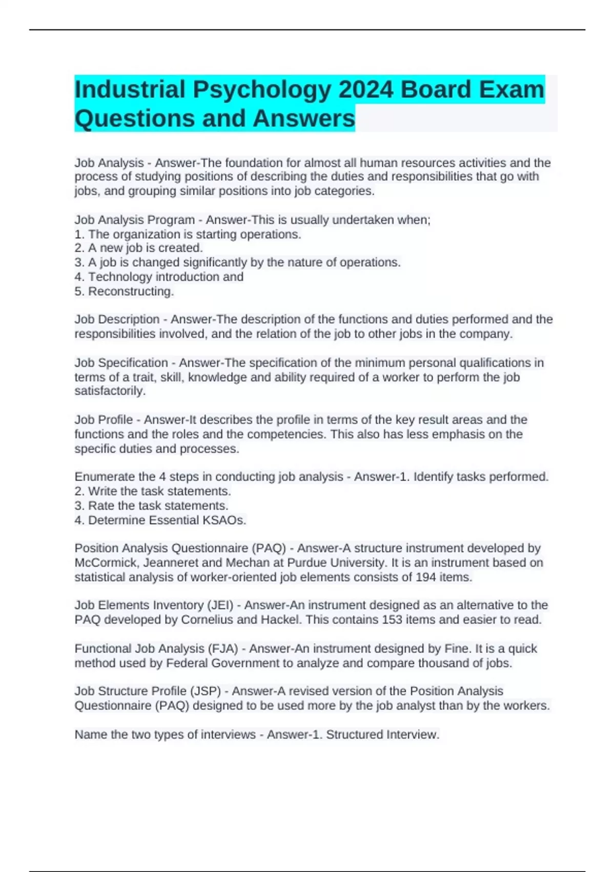 Position Analysis Questionnaire (PAQ) - Answer-A structure instrument developed by