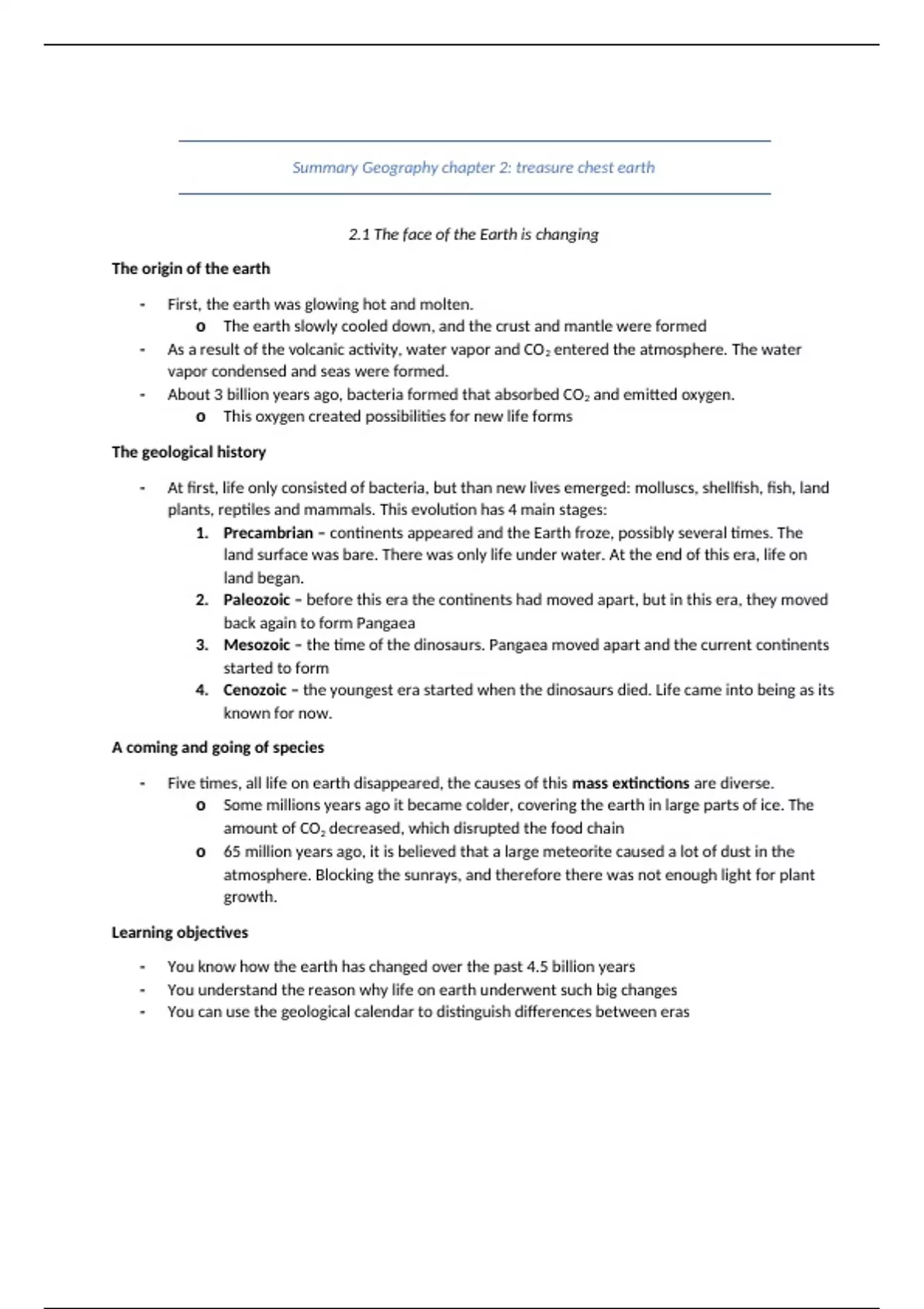 1. Precambrian – continents appeared and the Earth froze, possibly several times. The