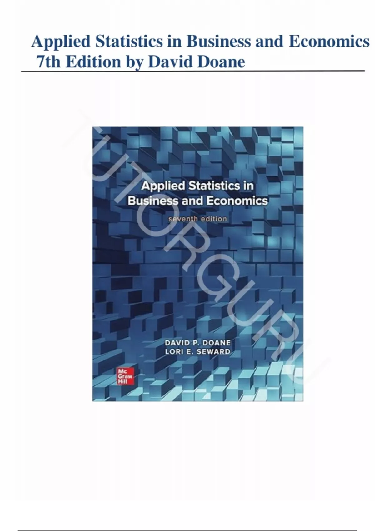 Solution Manual - for Applied Statistics in Business and Economics 7th Edition by David Doane, Lori . Seward, All Chapters 1-17 | Complete Guide A+