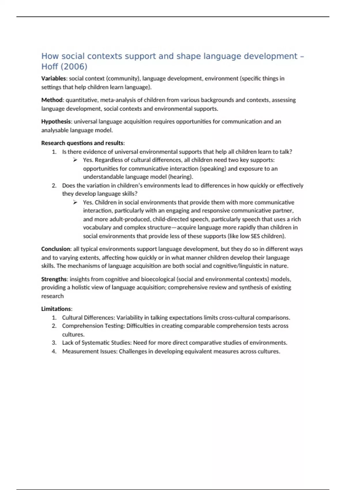 Samenvatting van de literatuur die we moeten lezen voor hoorcollege 3 van Leren Op School. Engelse literatuur is in het Engels samengevat, Nederlandse literatuur in het Nederlands. Literatuur: - How social contexts support and shape language development – Hoff (2006) - Taalontwikkeling en taalproblemen – Weerdenburg & Van Hell (2016)