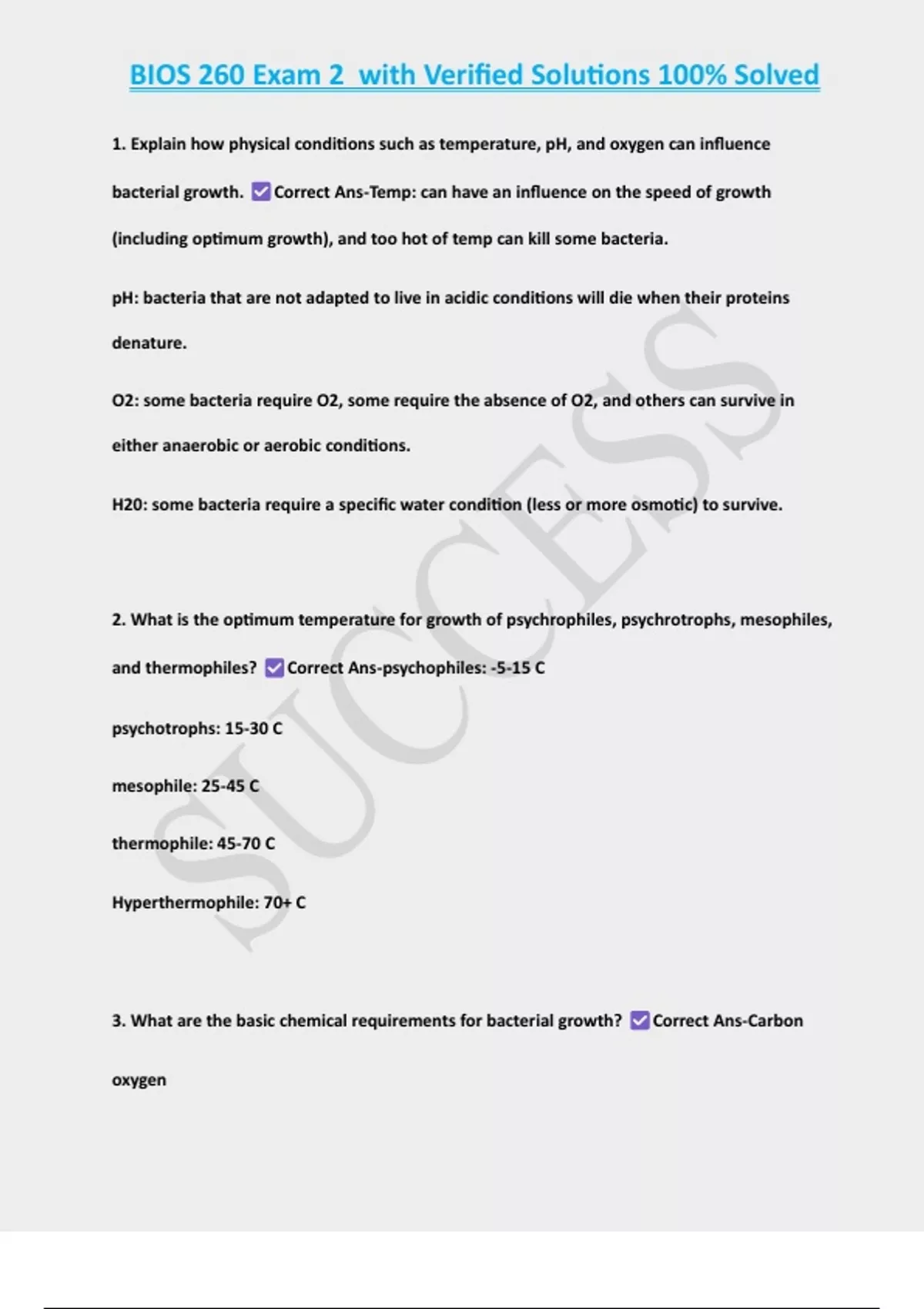 BIOS 260 Exam 2 with Verified Solutions 100% Solved