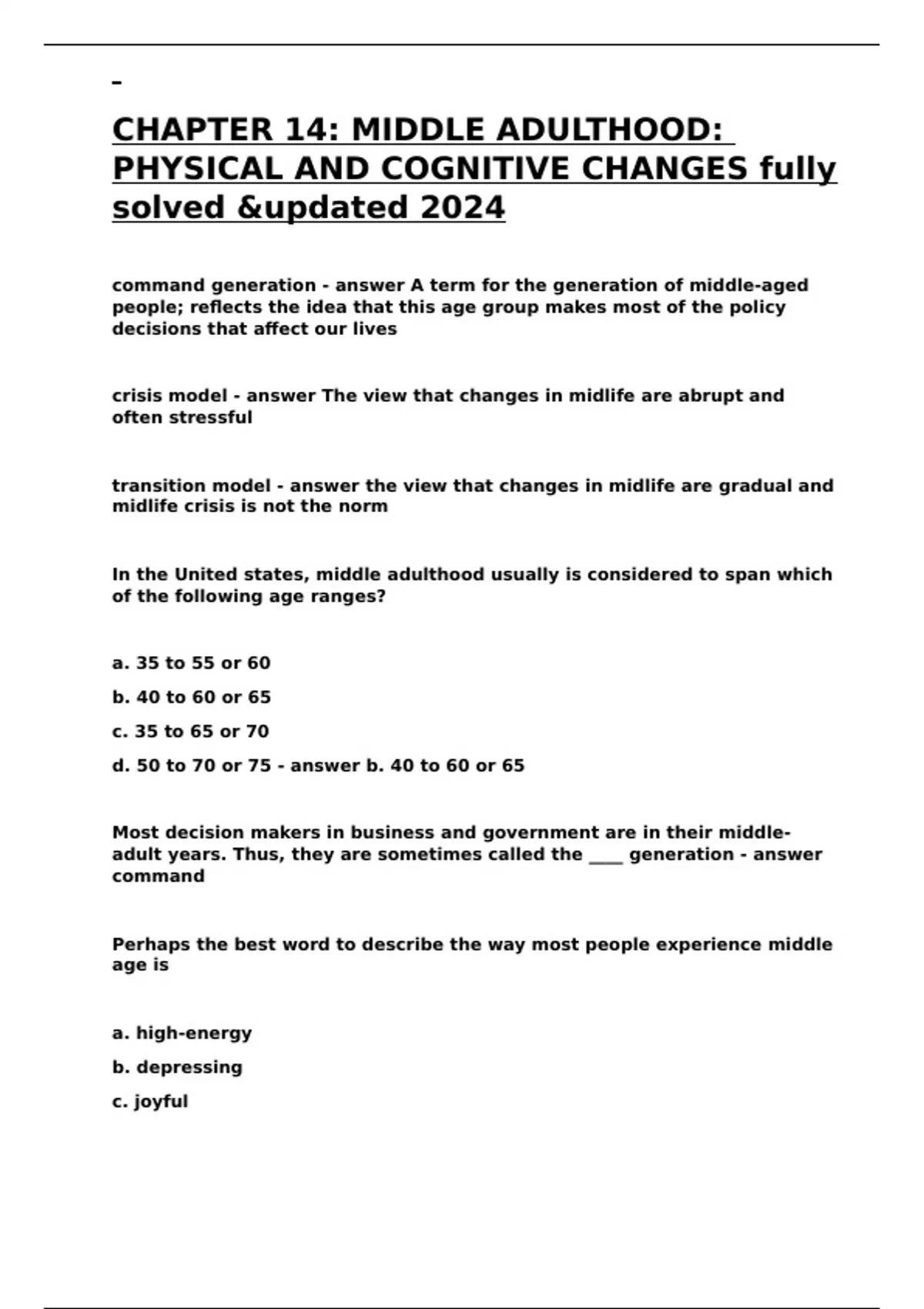 crisis model - answer The view that changes in midlife are abrupt and