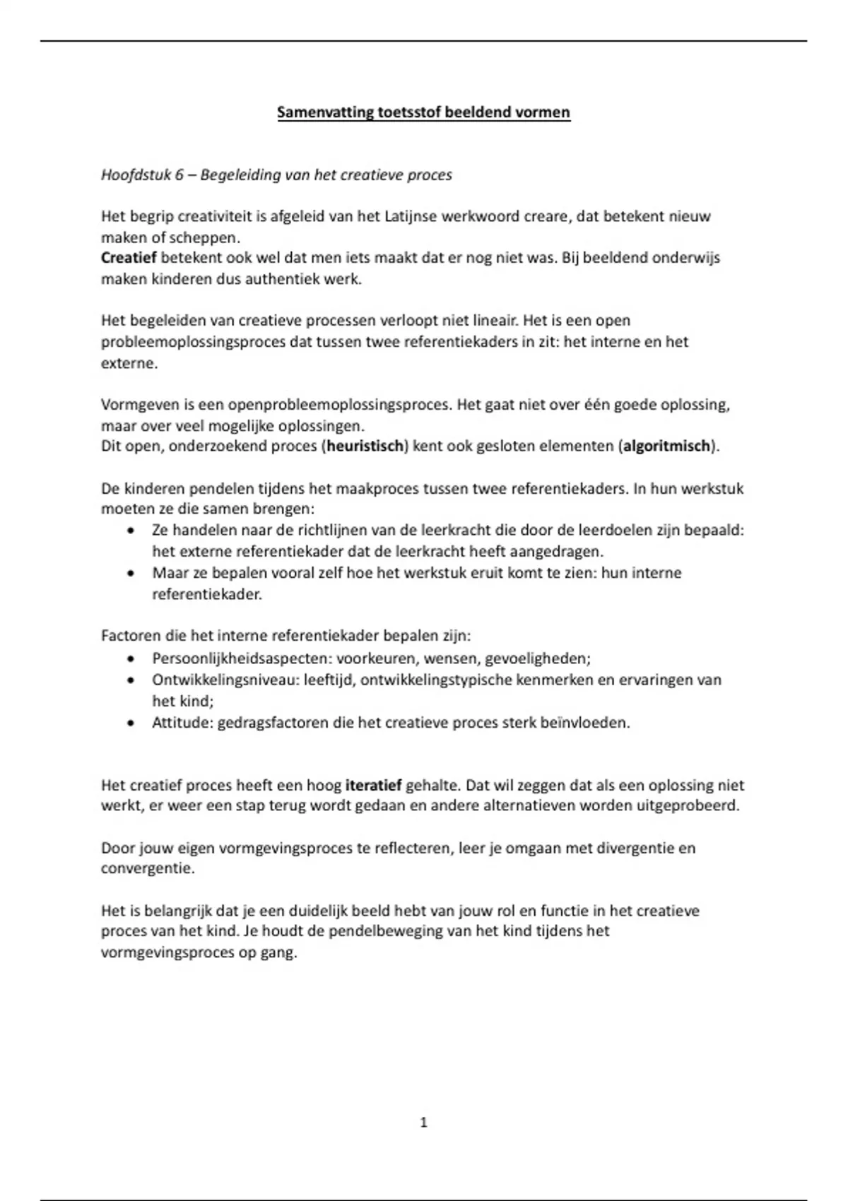 Samenvatting Toetsstof beeldend vormen thema 5, Pabo 2