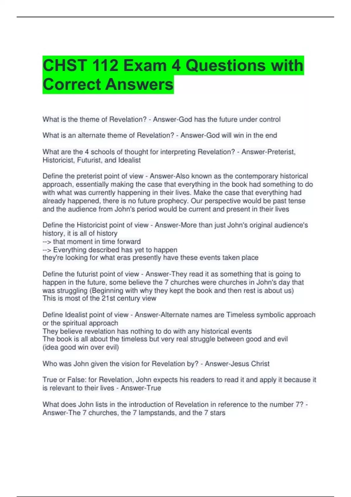 Define the preterist point of view - Answer-Also known as the contemporary historical