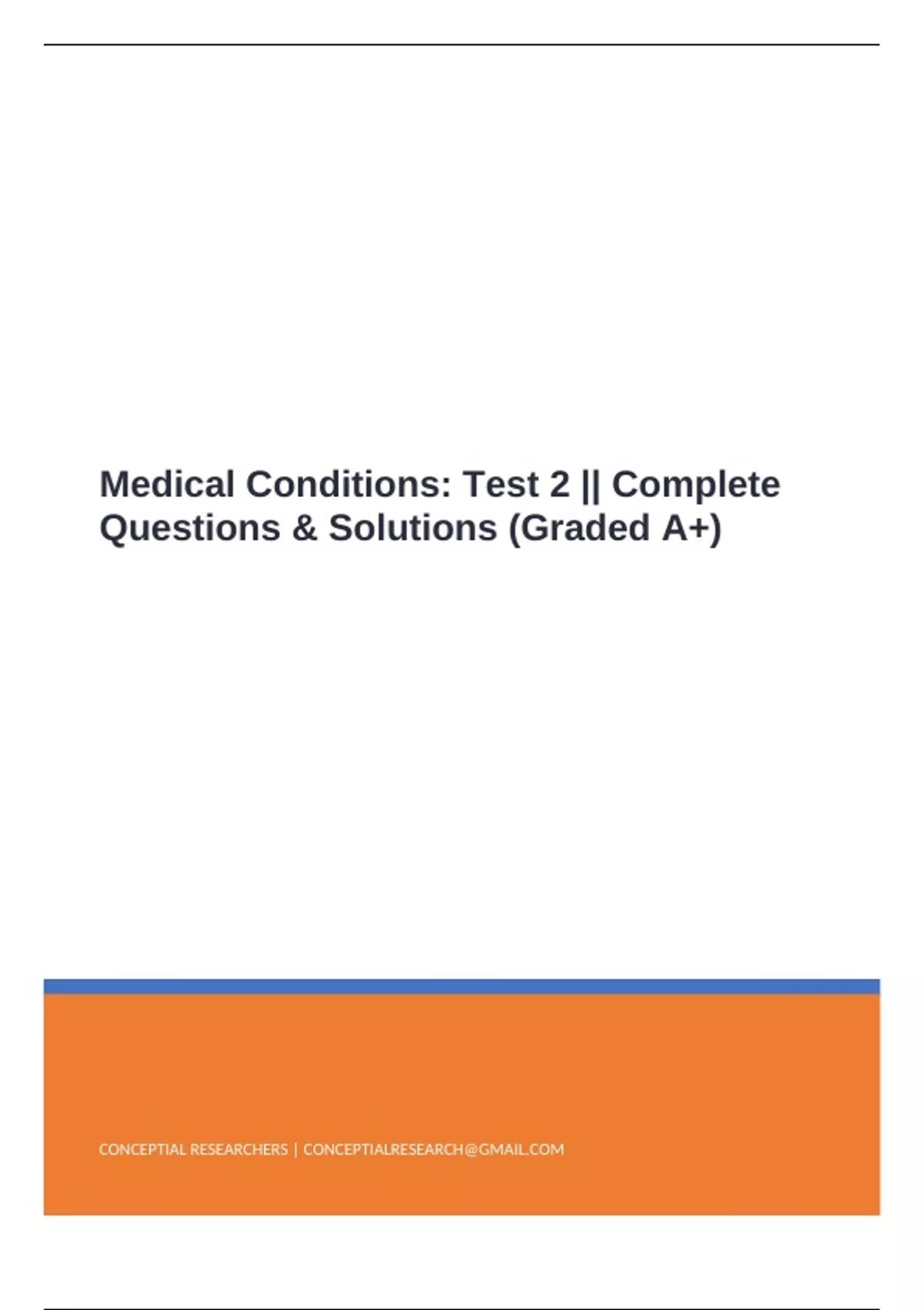 Medical Conditions: Test 2 || Complete Questions & Solutions (Graded A+)