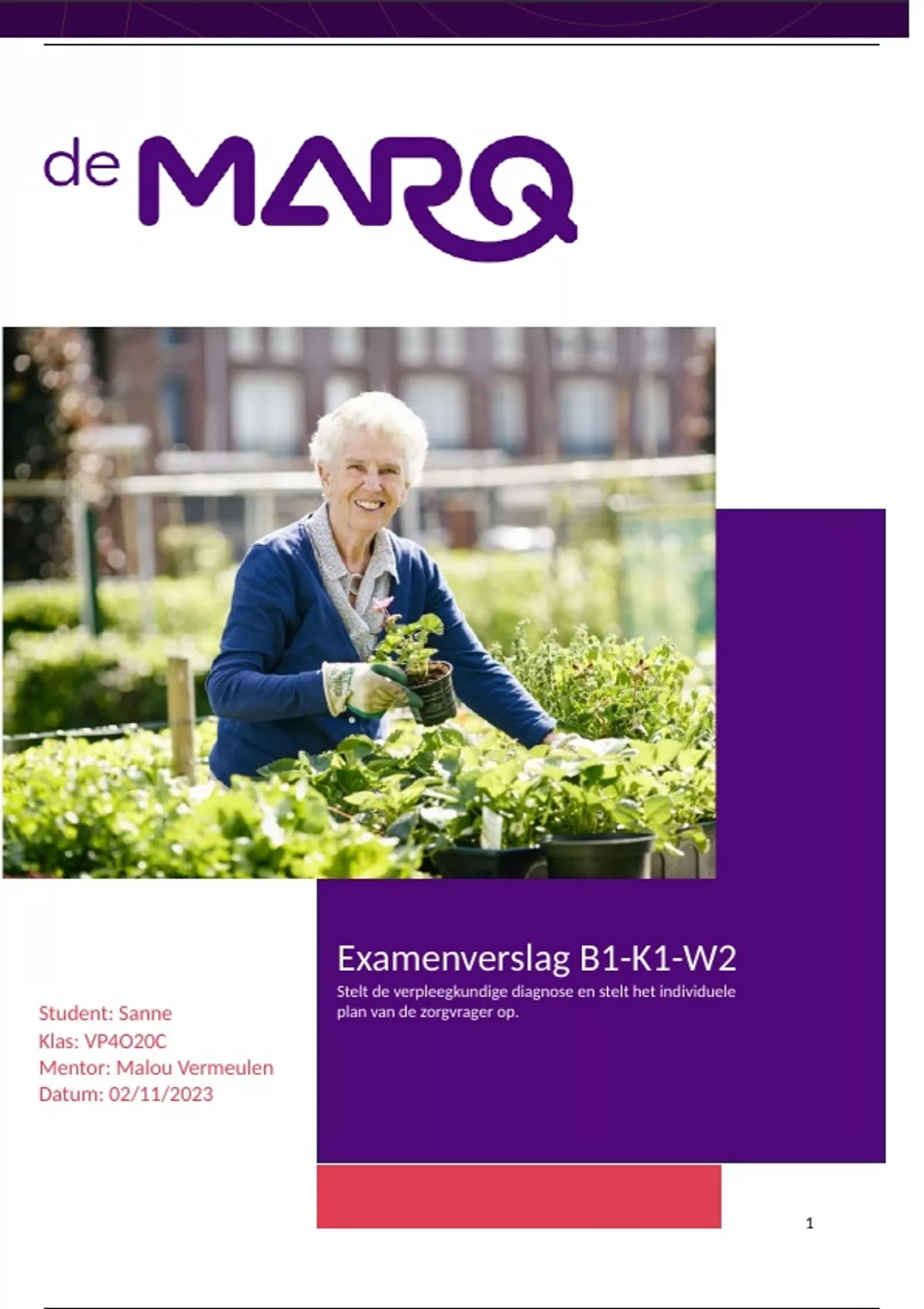 W1-K1-W2 Stelt de verpleegkundige diagnose en stelt het individuele plan van de zorgvrager op.