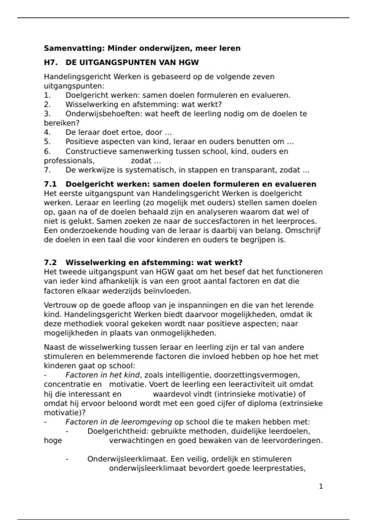 H7. DE UITGANGSPUNTEN VAN HGW