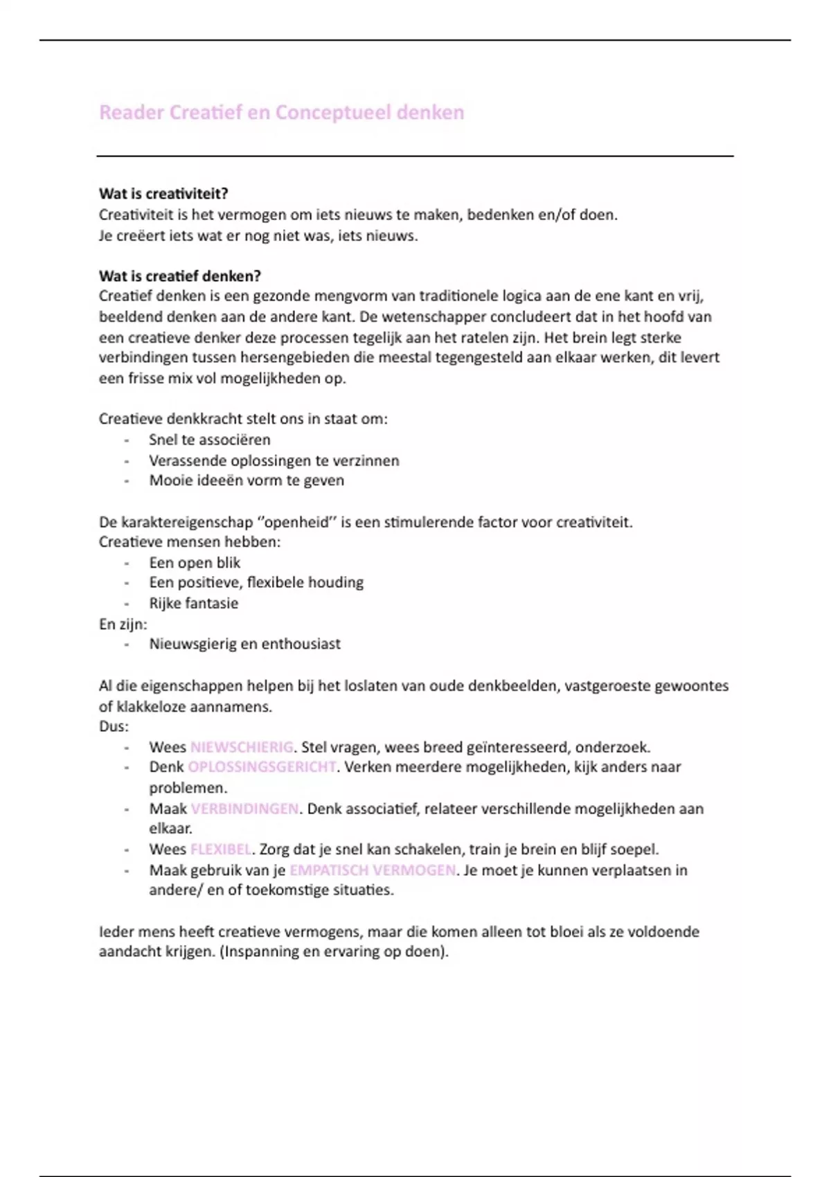 Samenvatting Reader Creatief en conceptueel denken