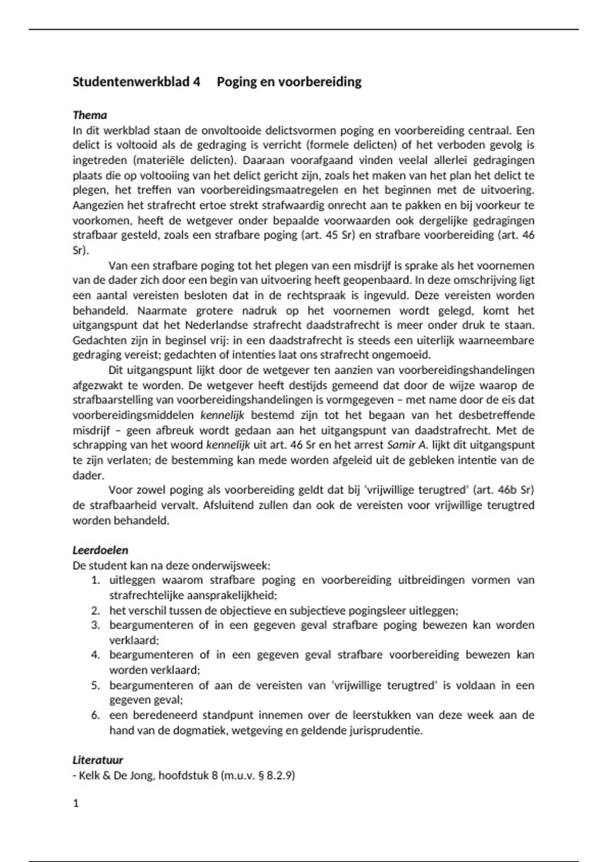 In dit werkblad staan de onvoltooide delictsvormen poging en voorbereiding centraal. Een