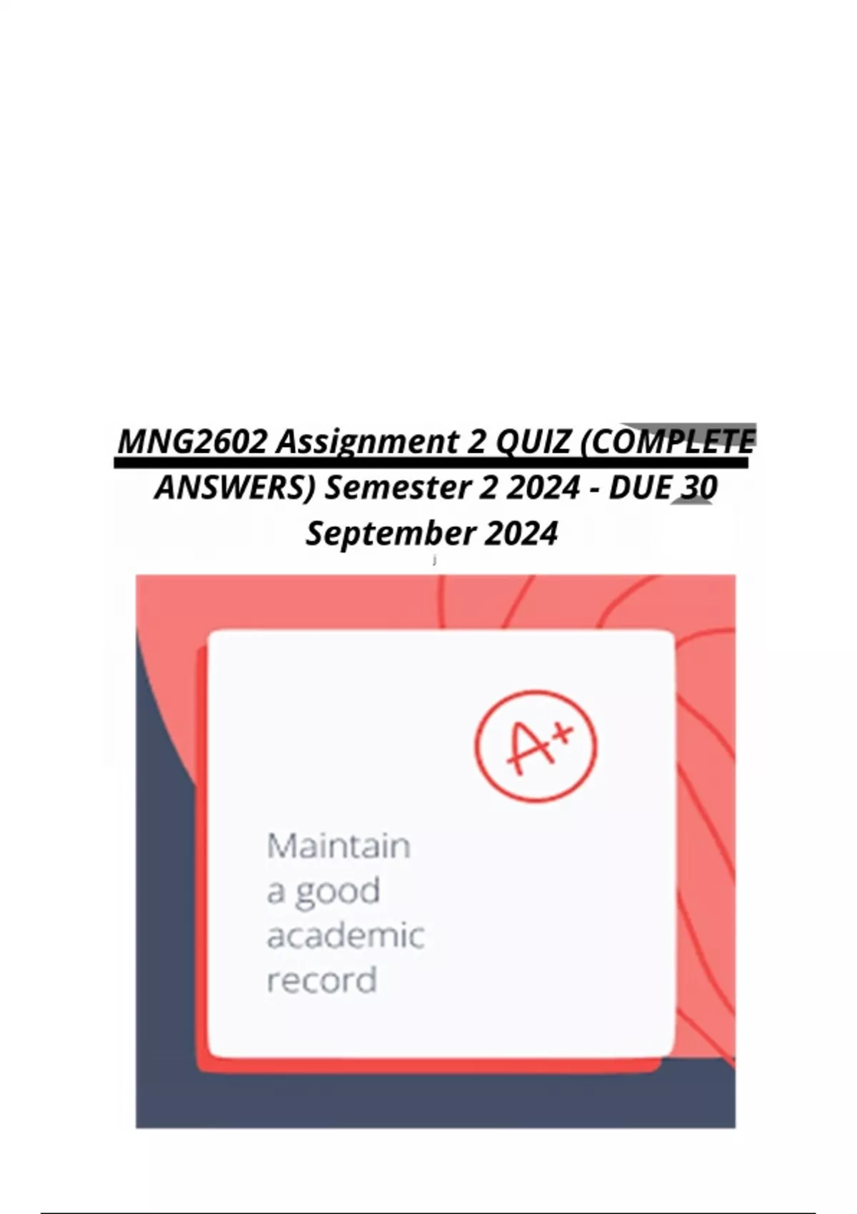 MNG2602 Assignment 2 QUIZ (COMPLETE ANSWERS) Semester 2 2024 - DUE 30 September 2024