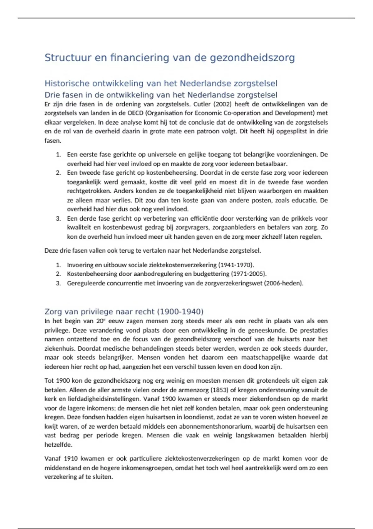 Er zijn drie fasen in de ordening van zorgstelsels. Cutler (2002) heeft de ontwikkelingen van de