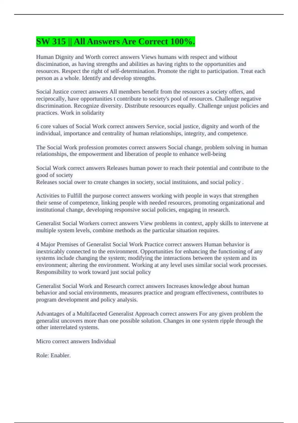 Generalist Social Workers correct answers View problems in context, apply skills to intervene at