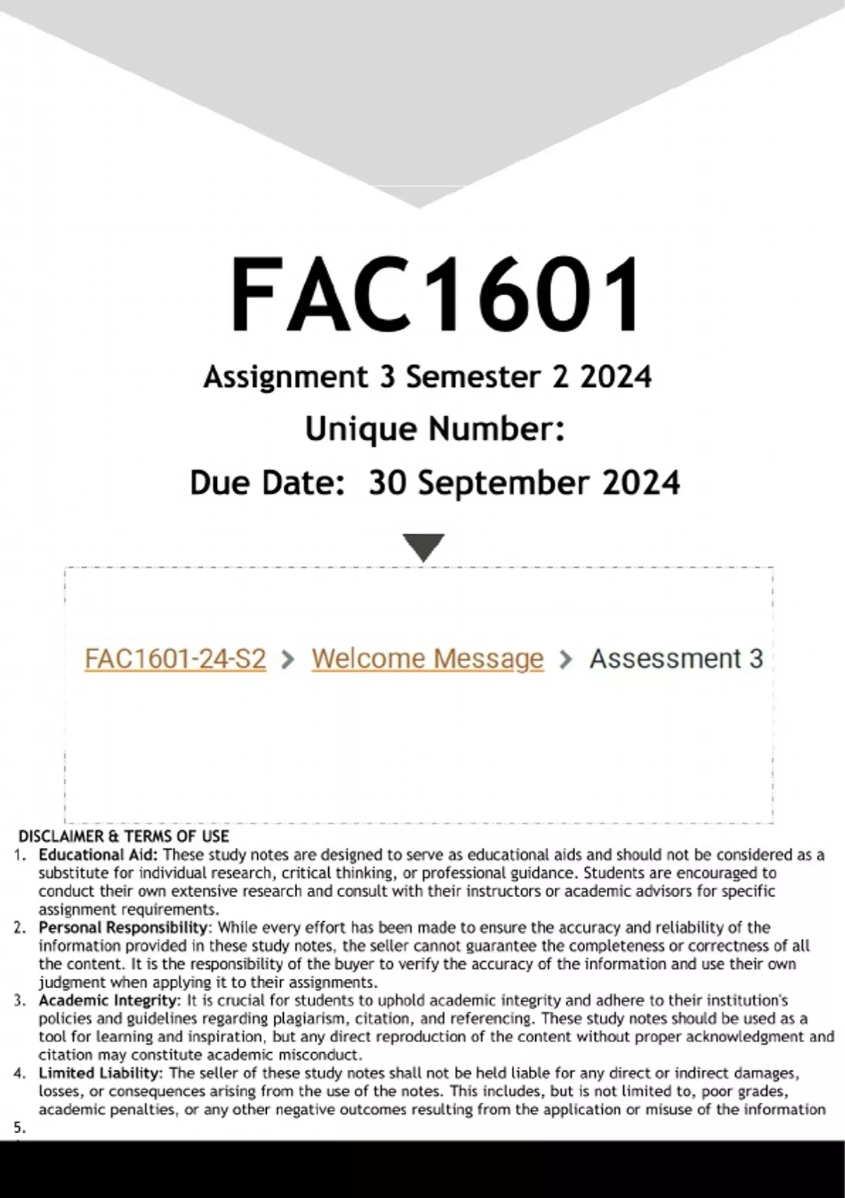 FAC1601 Assignment 3 (ANSWERS) Semester 2 2024 - DISTINCTION GUARANTEED