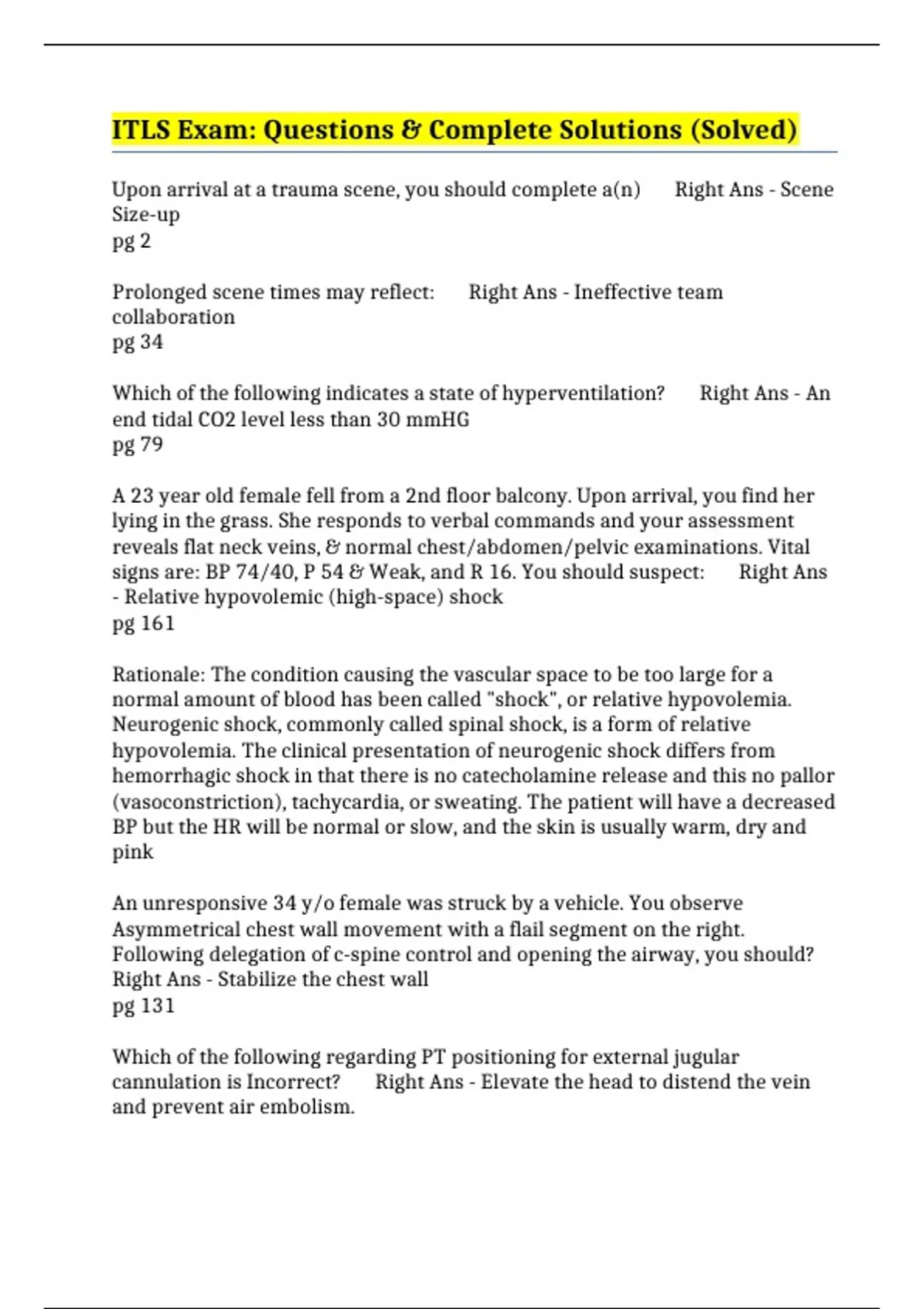 BP 112/68, P 94, R18. You should? Right Ans - Prepare PT for transport &